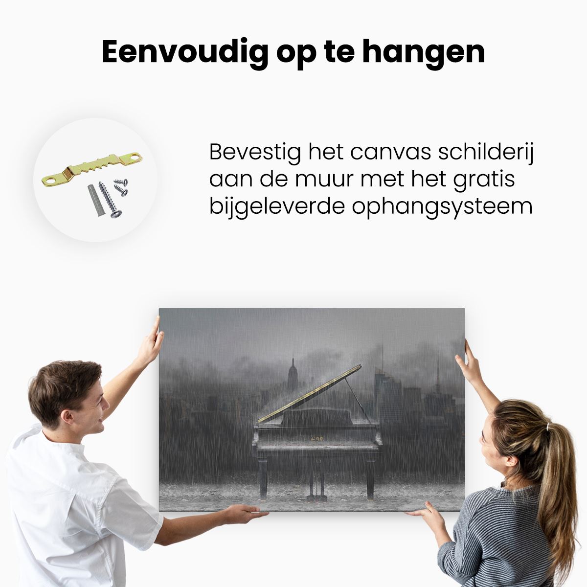 Bij aankoop ontvang je een meegeleverd ophangsysteem, zodat je op een simpele en snelle wijze het schilderij boven de bank of bed kan monteren.