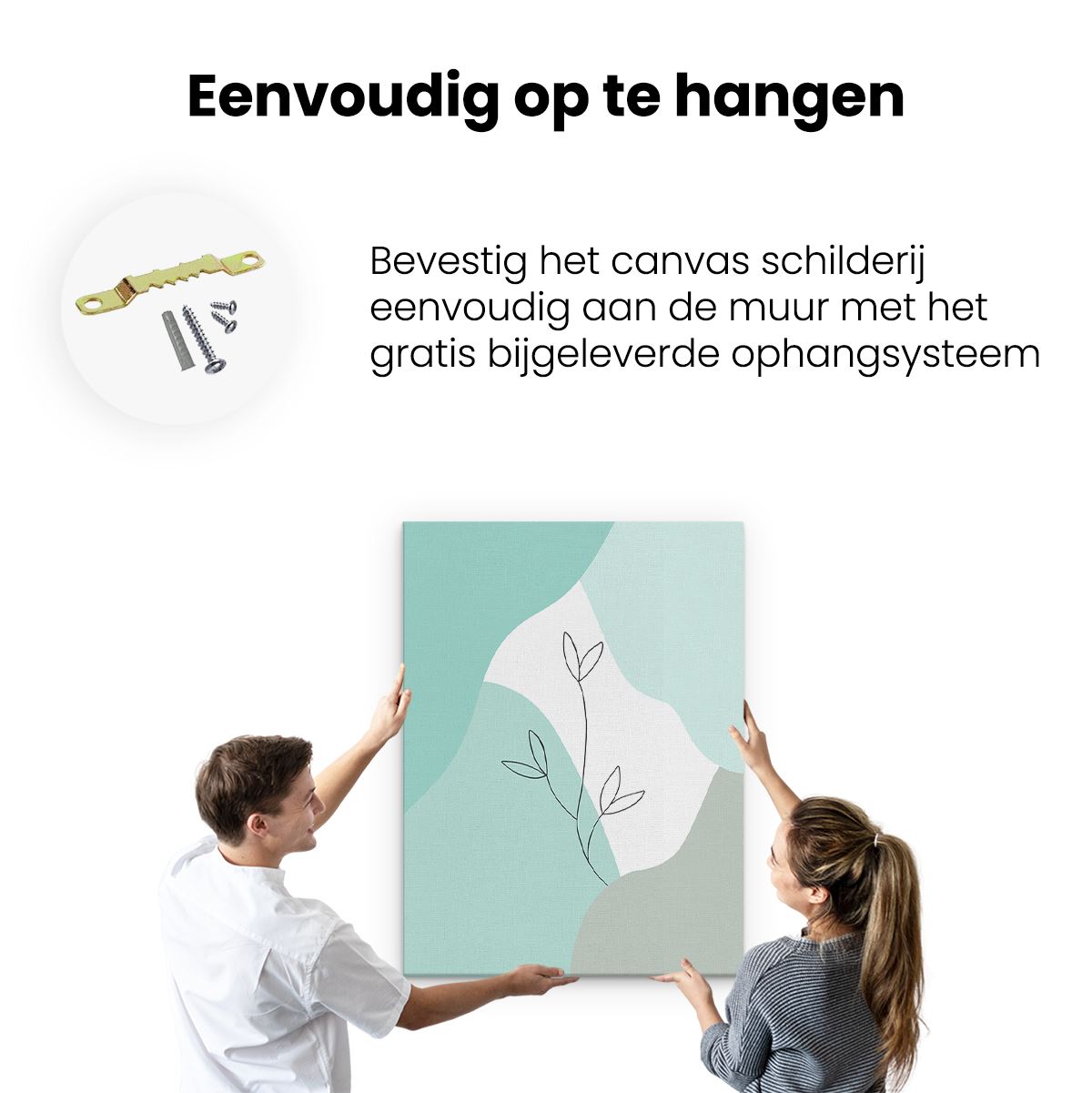 Bij aankoop ontvang je een meegeleverd ophangsysteem, zodat je op een simpele en snelle wijze het schilderij boven de bank of bed kan monteren.