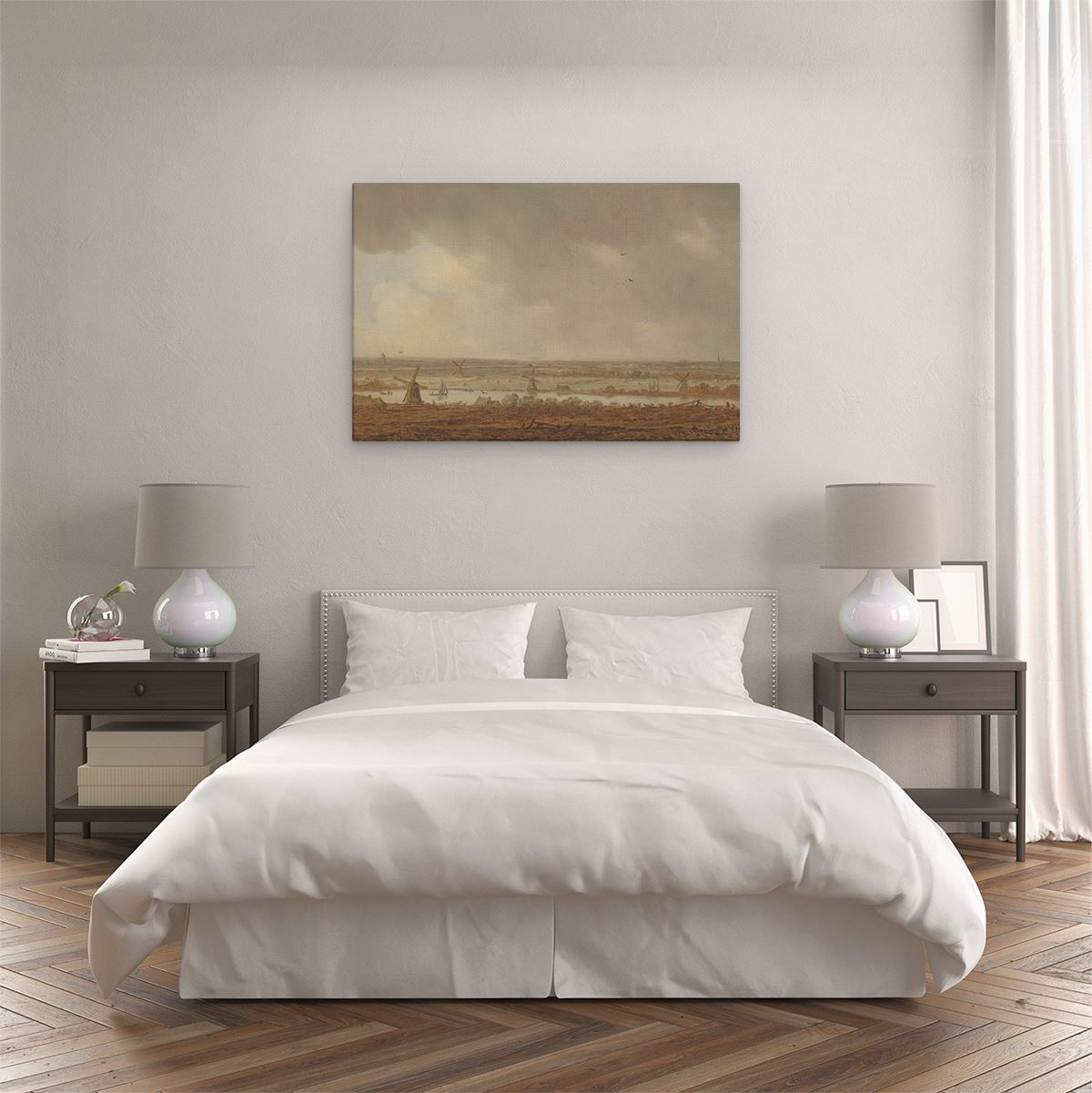 Bij aankoop ontvang je een meegeleverd ophangsysteem, zodat je op een simpele en snelle wijze het schilderij boven de bank of bed kan monteren.