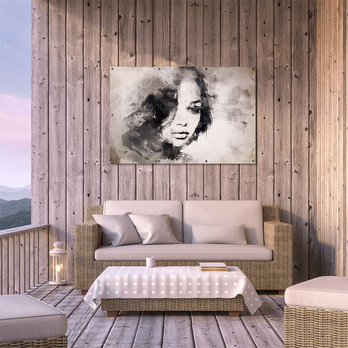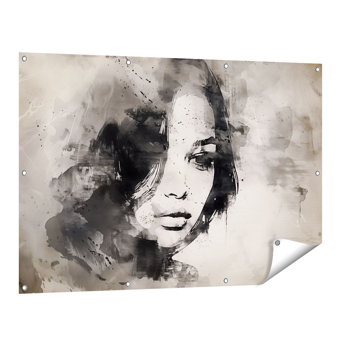 Tuinposter Portret van een Vrouw in Zwart Wit