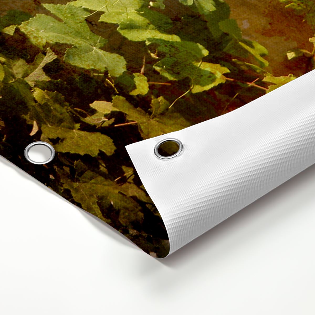 Door de ringen moet je een tiewrap bevestigen, waarmee je de tuinposter aan schroeven aan bijvoorbeeld de schutting kunt bevestigen.