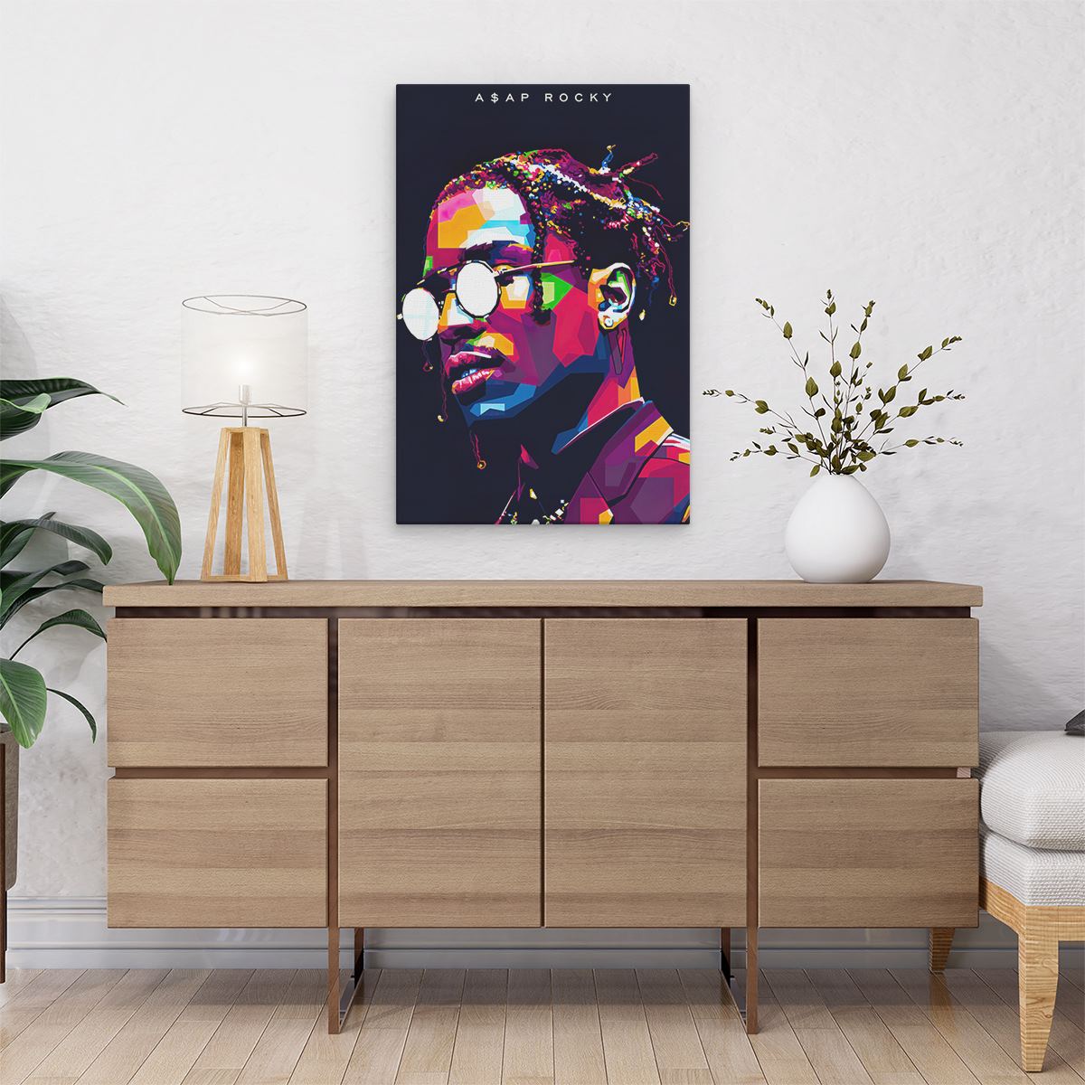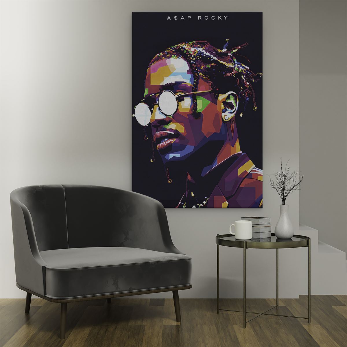 Schilderij Rapper A$AP Rocky in Abstracte Kleuren