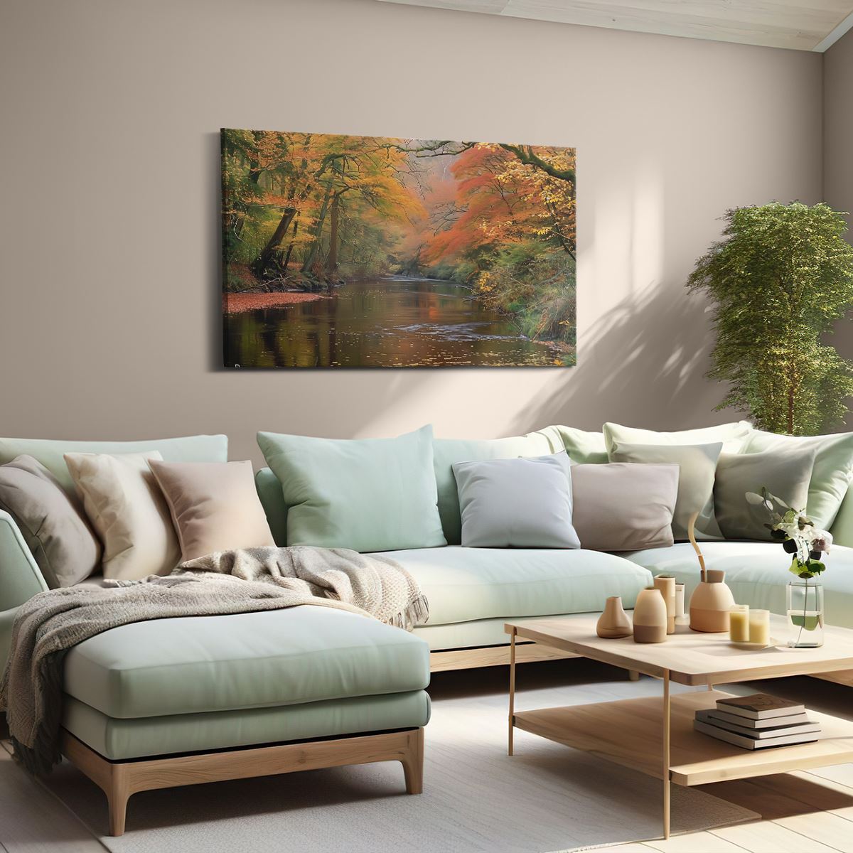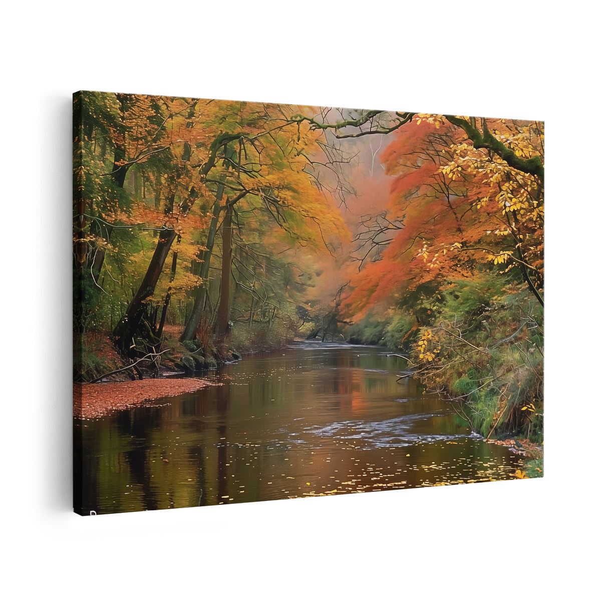 Schilderij Rivier Omgeven door Bomen in de Herfst