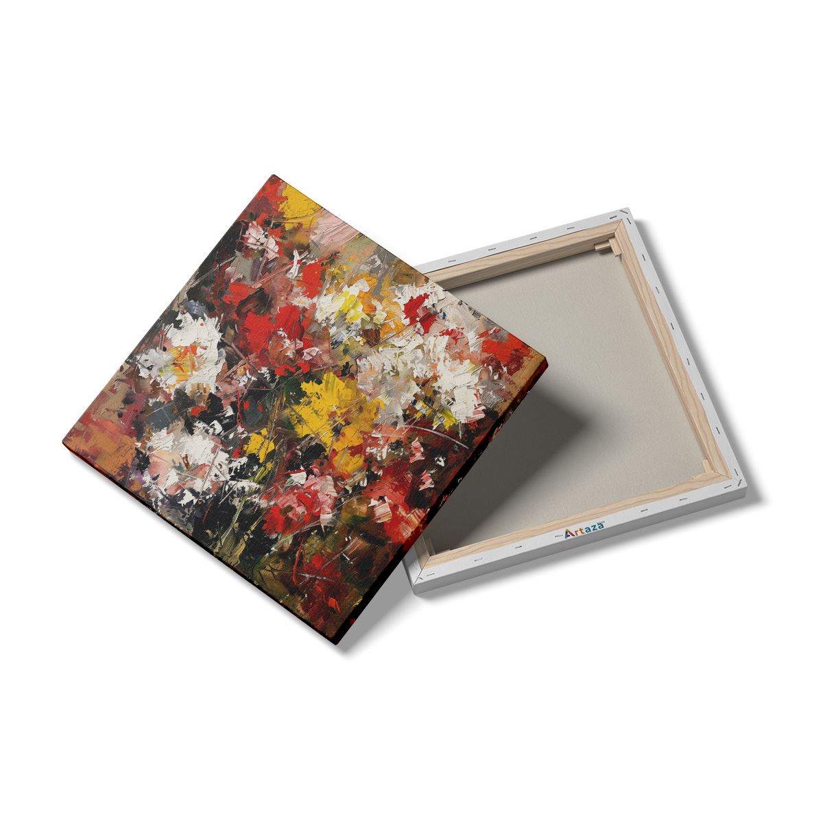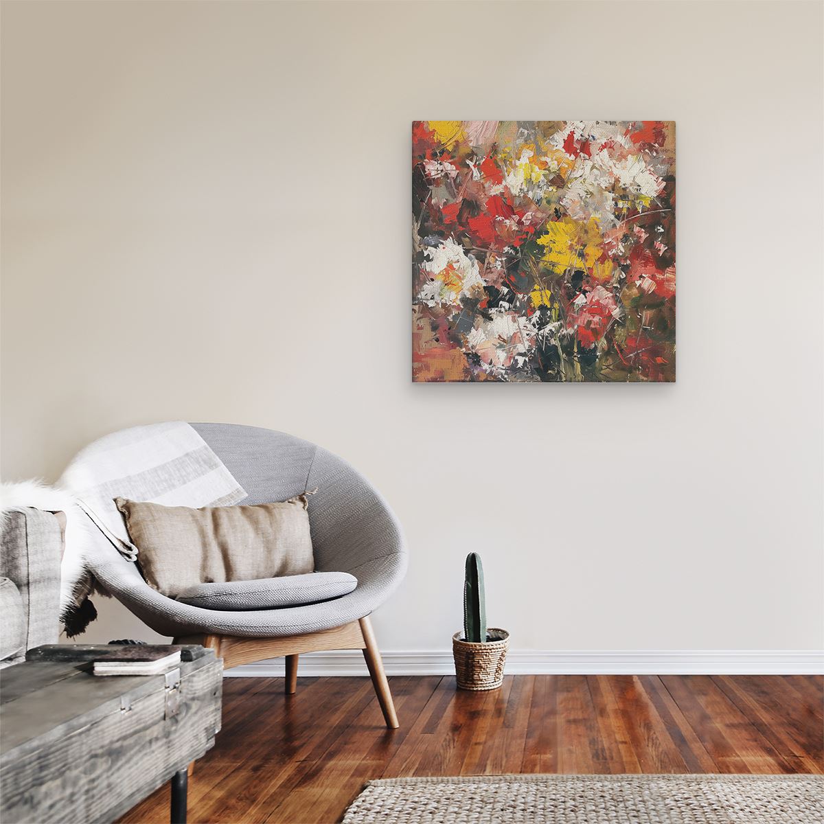 Schilderij Rode, Gele en Witte Bloemen in een Vaas