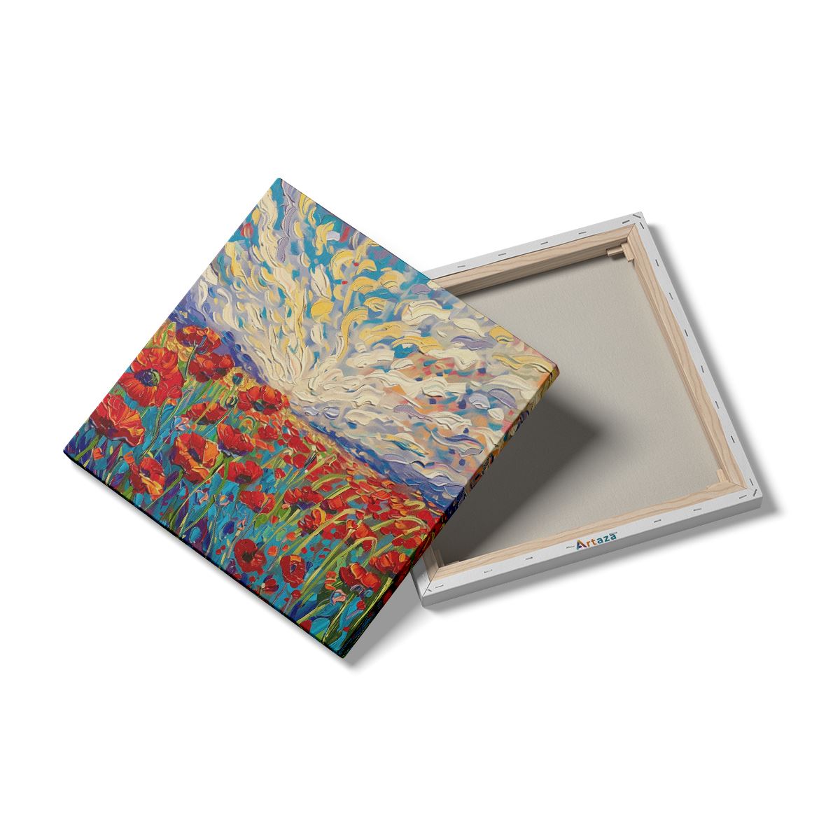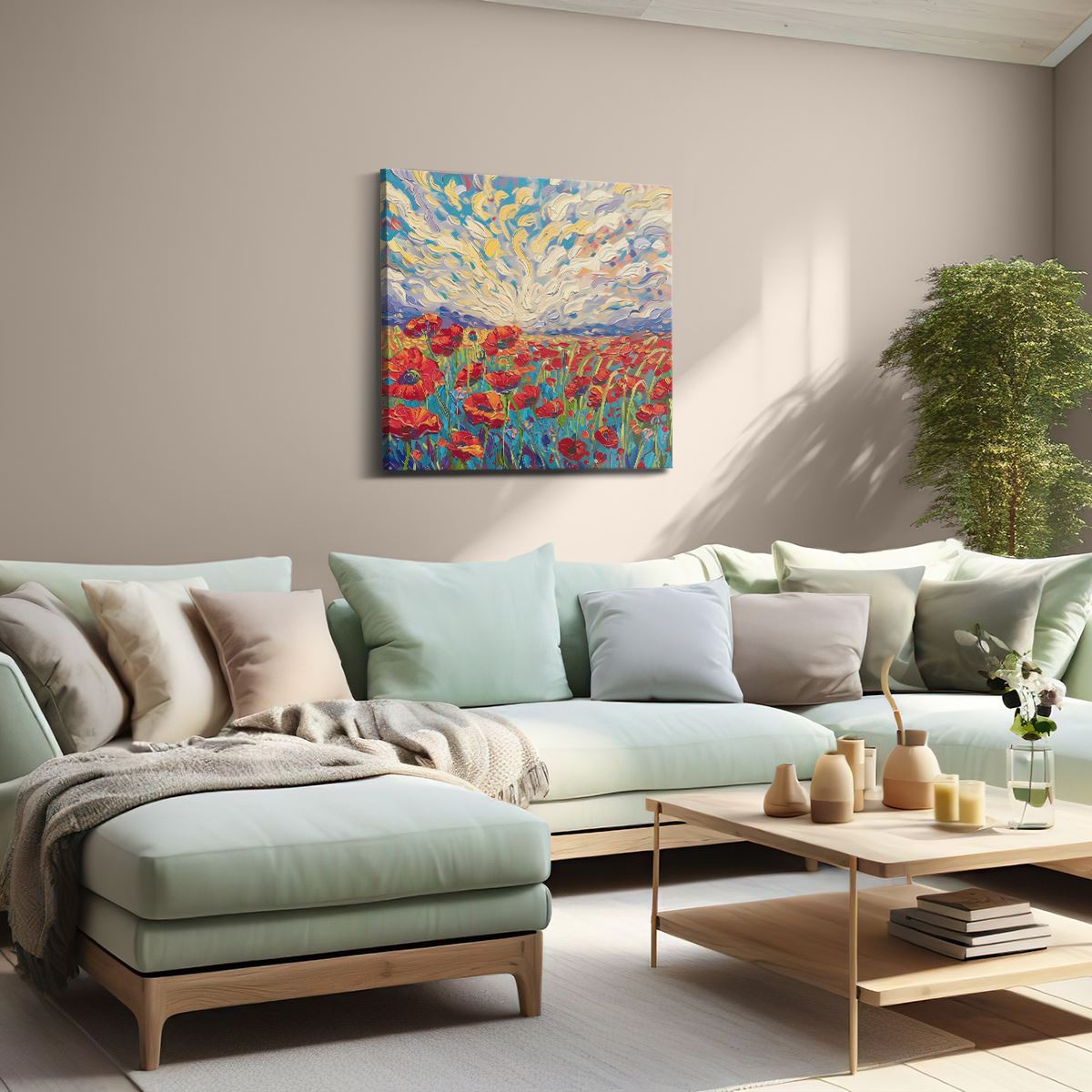 Schilderij Rode Klaprozen in een Veld met een Blauwe Lucht