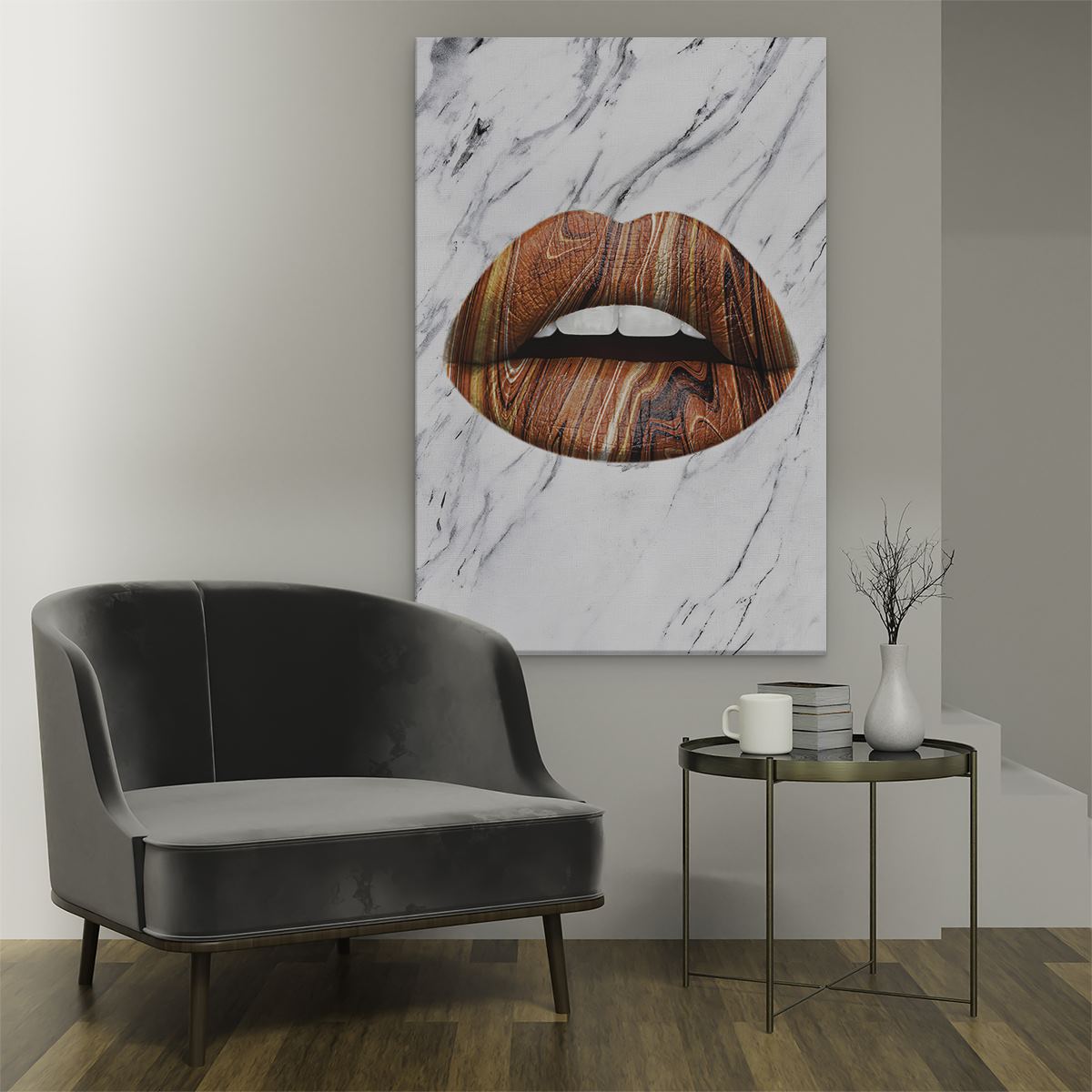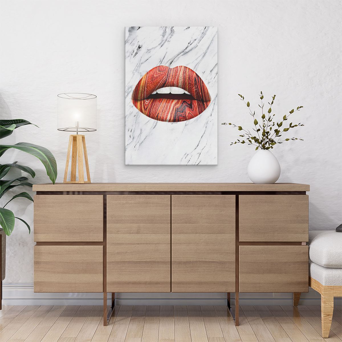 Schilderij Rode Lippen op Abstract Witte Achtergrond