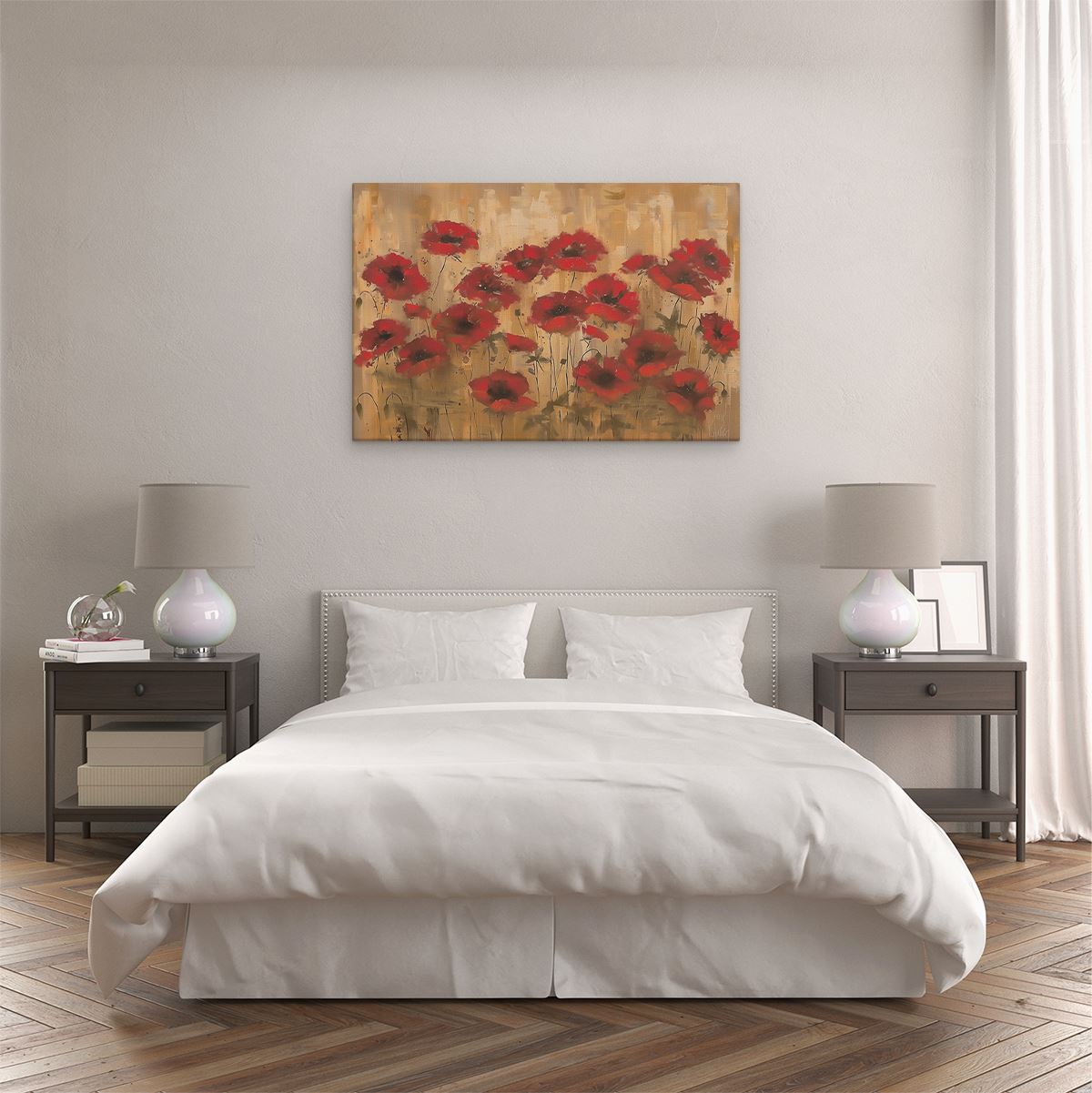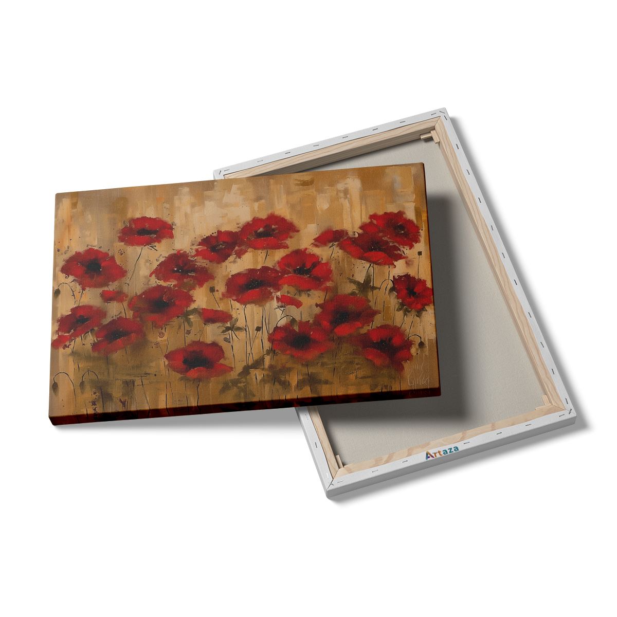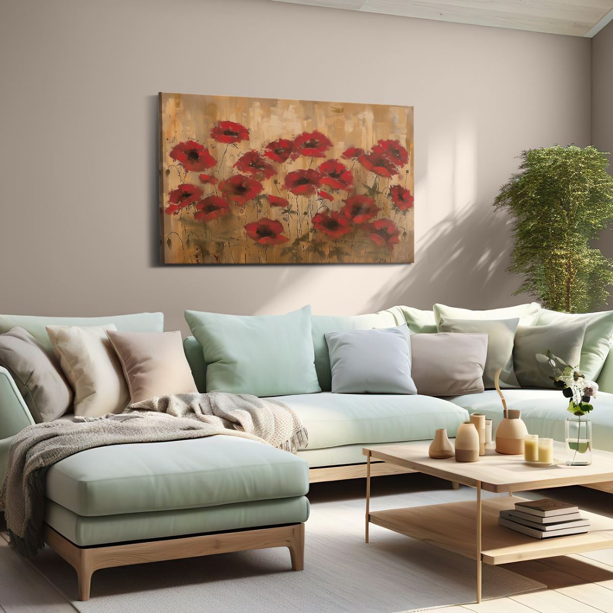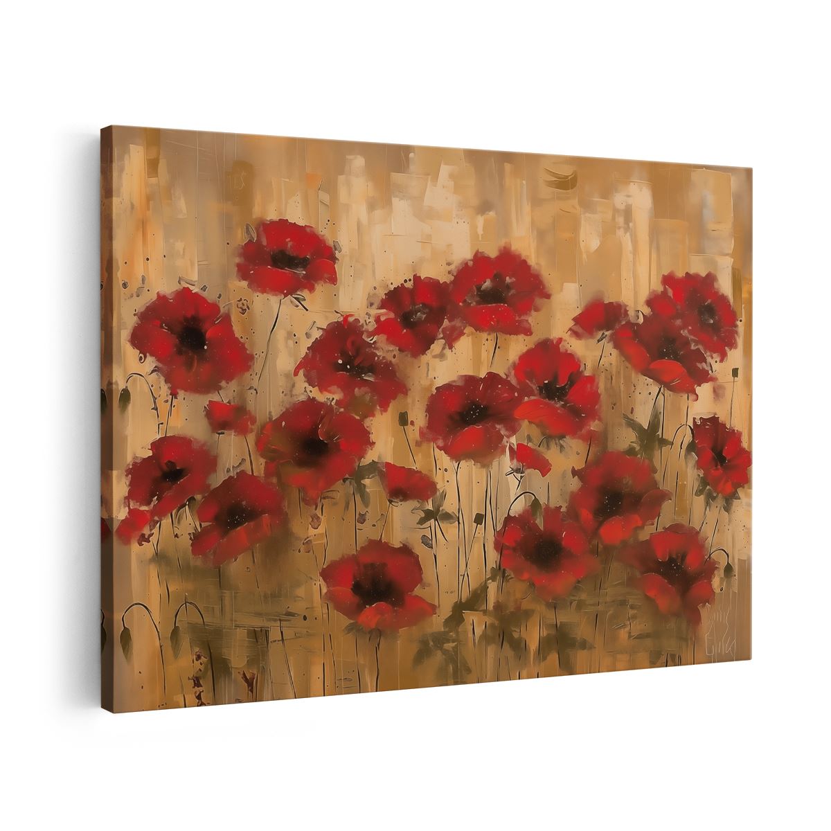 Schilderij Rode Papavers op een Bruine Achtergrond