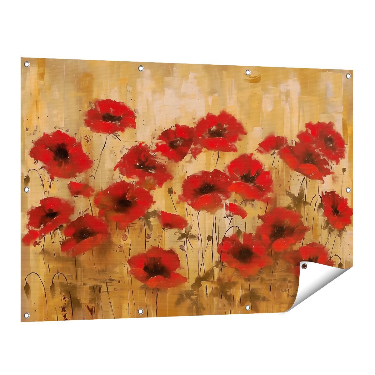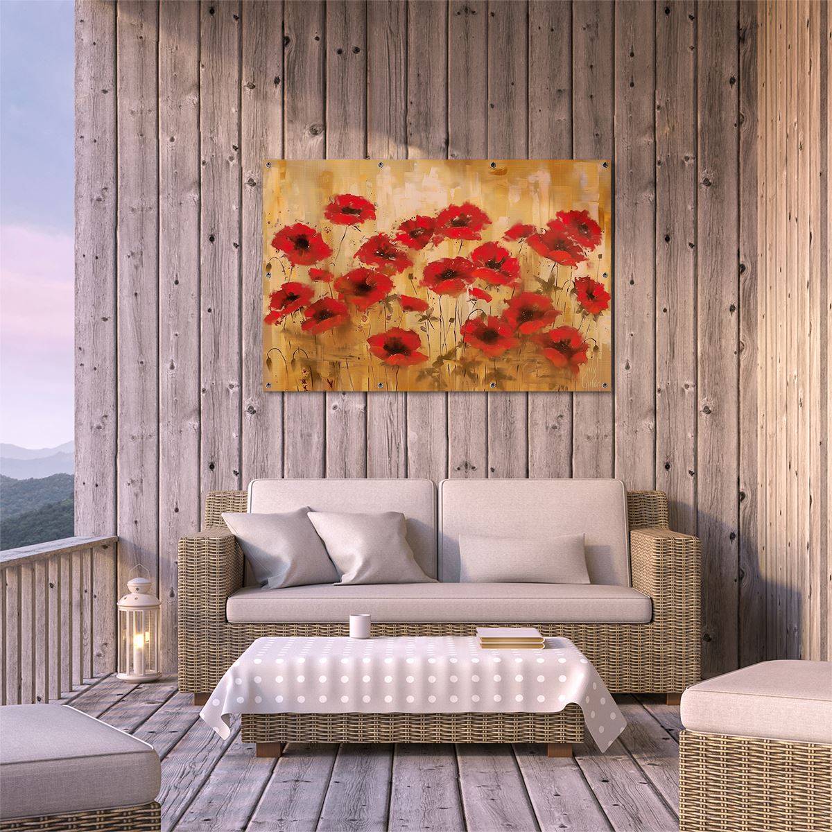 Tuinposter Rode Papavers op een Bruine Achtergrond
