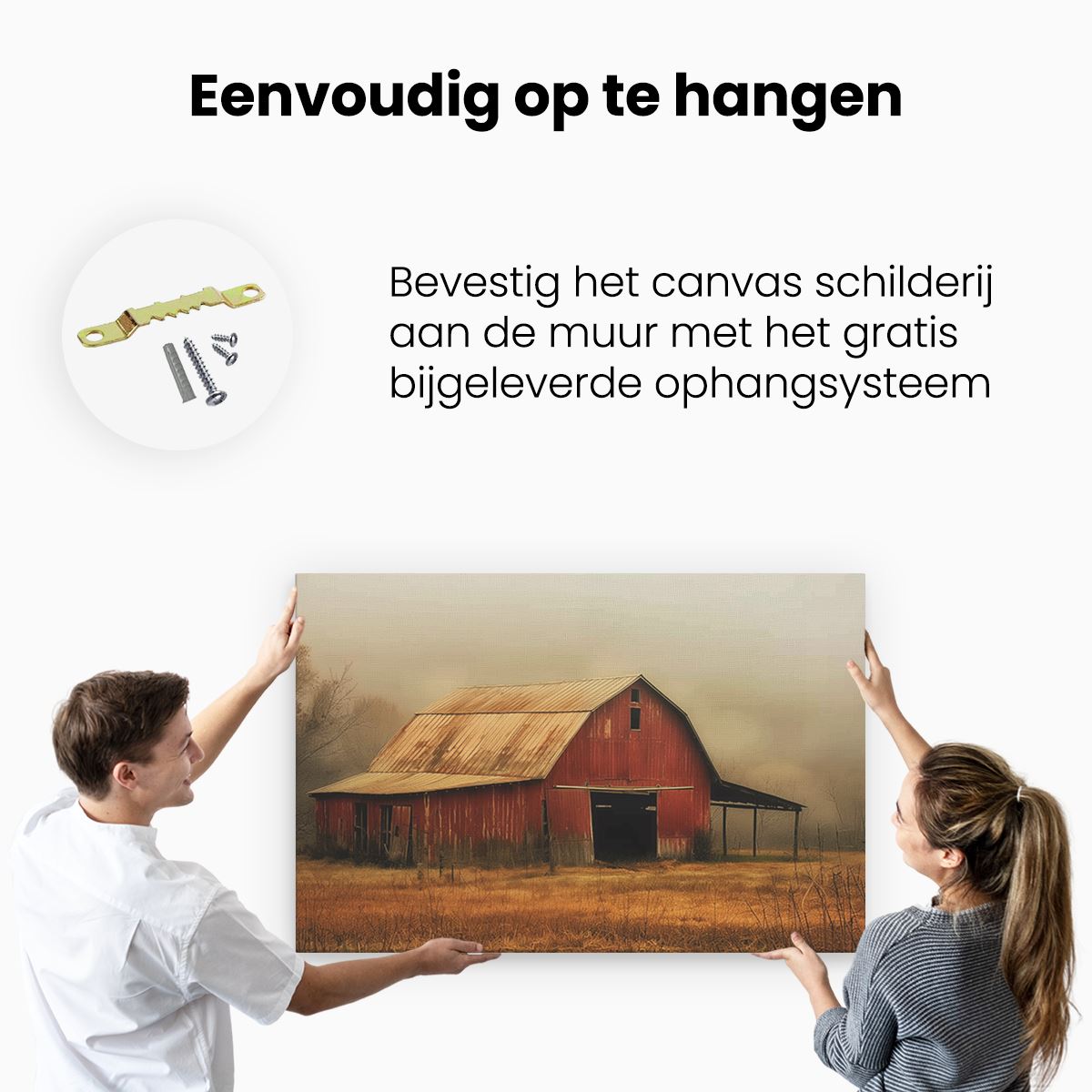 Bij aankoop ontvang je een meegeleverd ophangsysteem, zodat je op een simpele en snelle wijze het schilderij boven de bank of bed kan monteren.