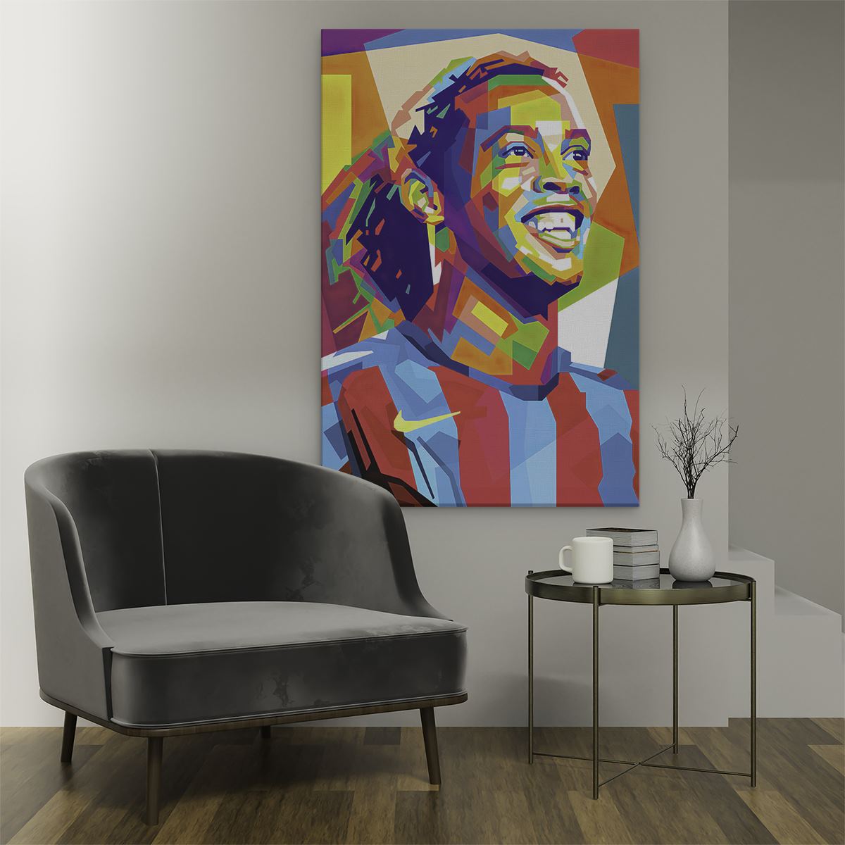 Schilderij Ronaldinho bij FC Barcelona in Abstracte Kleuren
