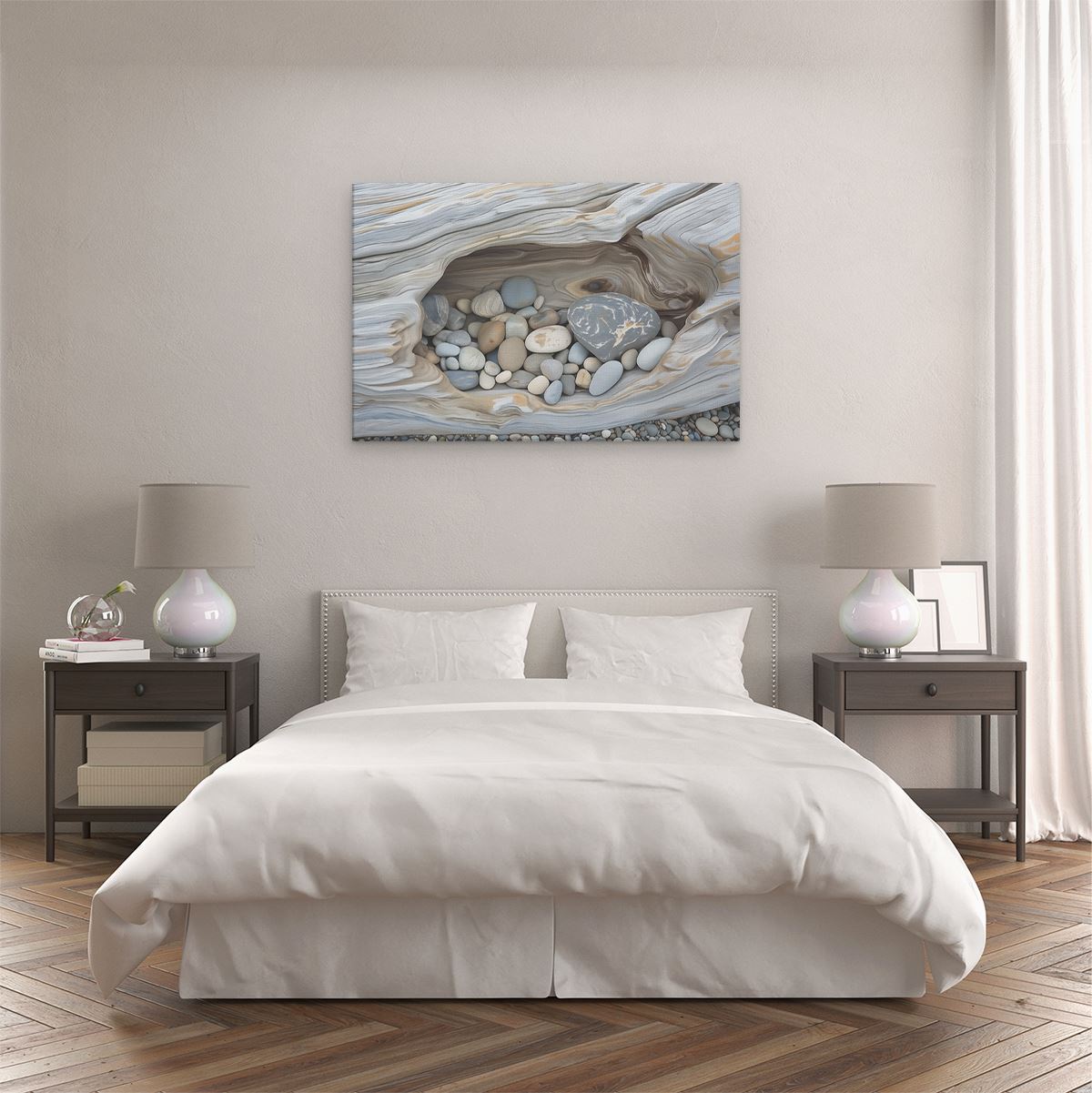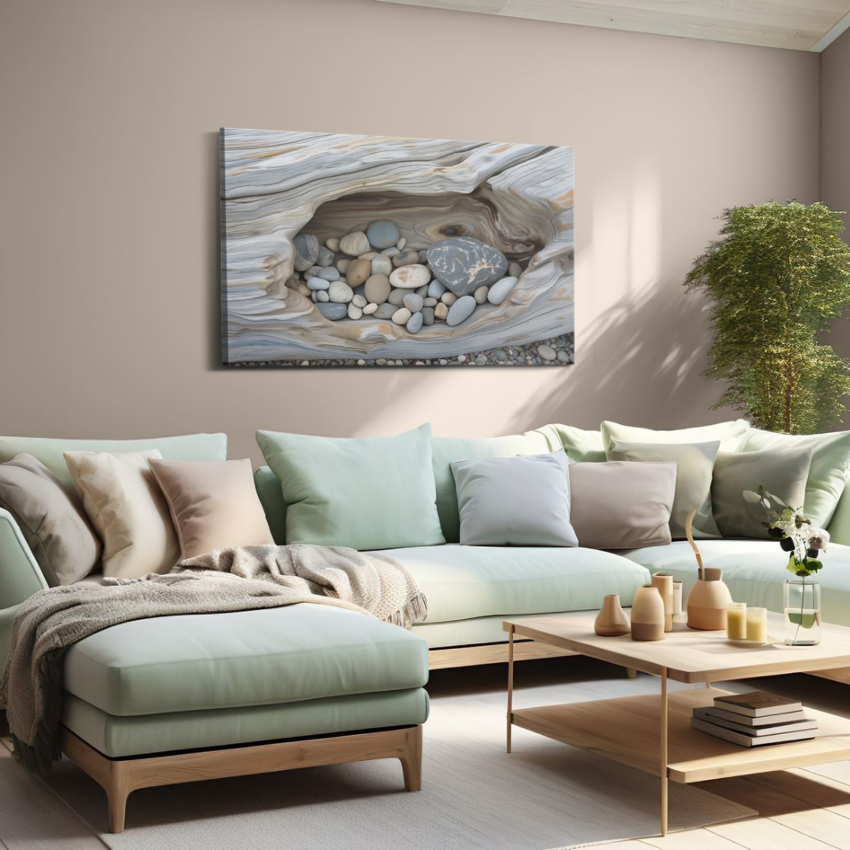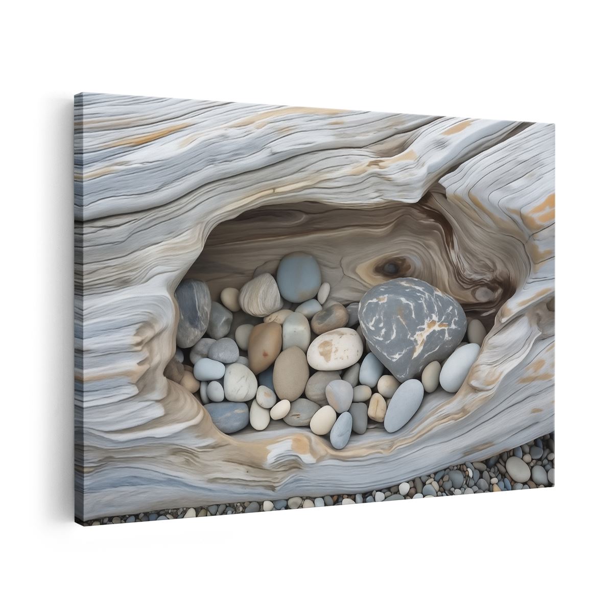 Schilderij Rotsen en Kiezelstenen in een Boomstam