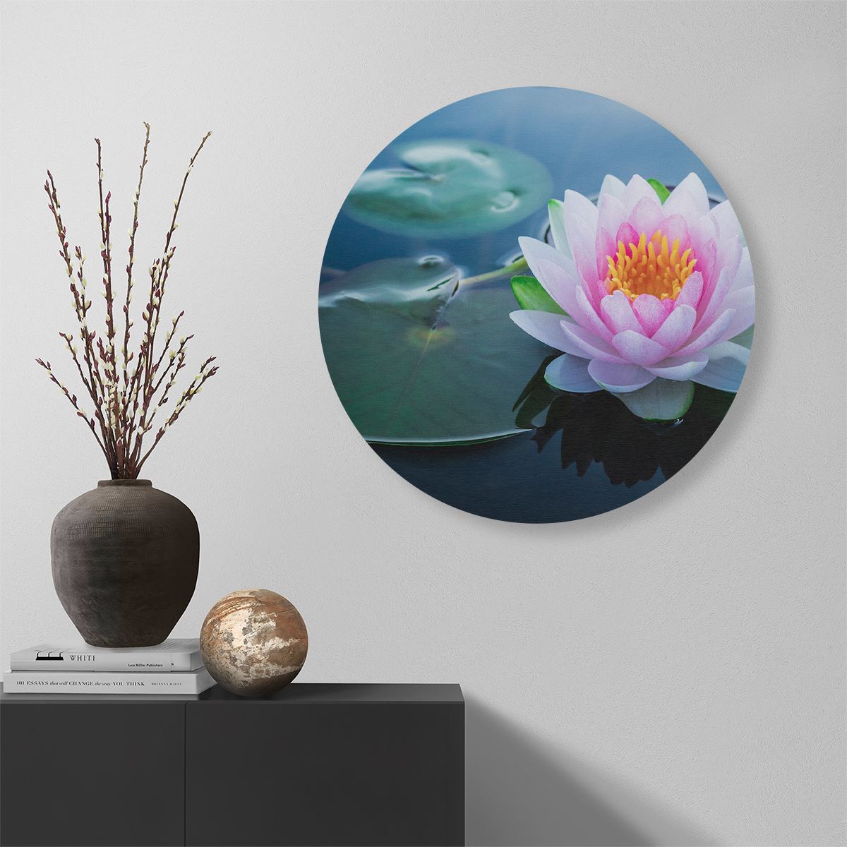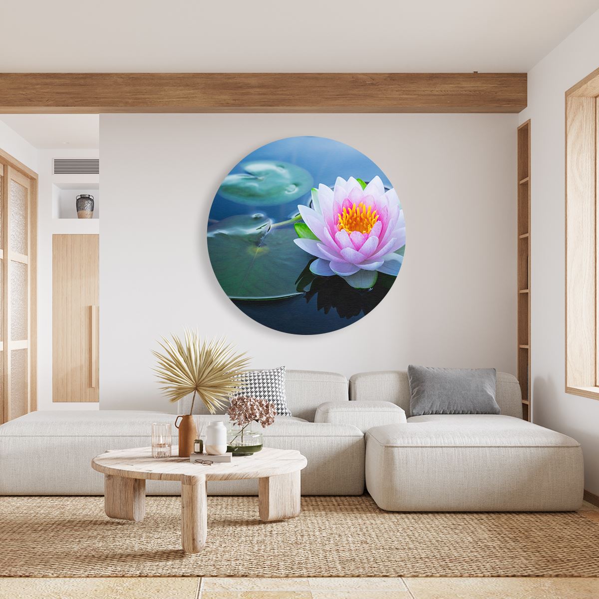 Wandcirkel Roze Lotusbloem Met Waterlelies