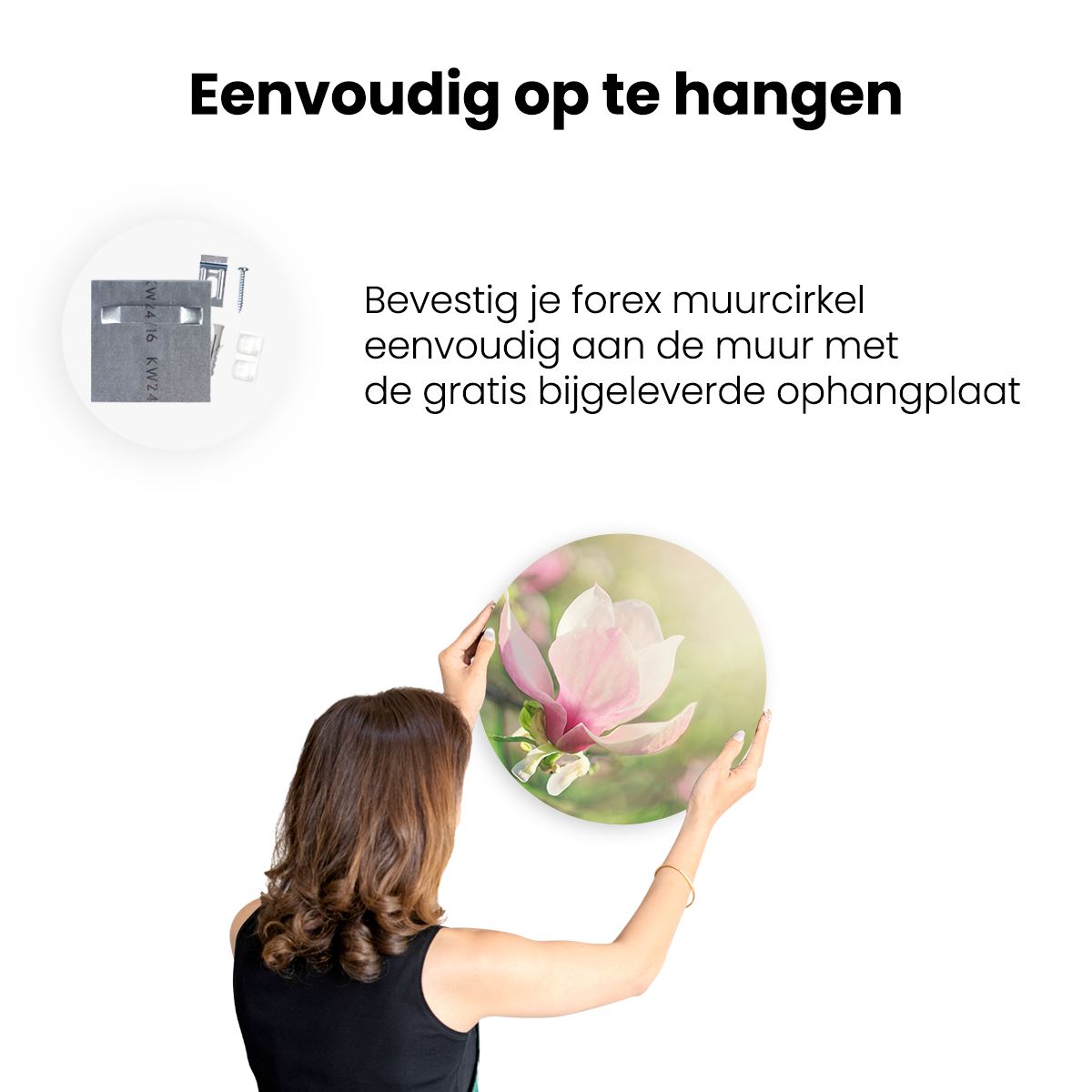 Gebruik het meegeleverde bevestigingsmateriaal om de wandcirkel aan de meeste wanden om te kunnen hangen. Een schroef en plug leveren we mee.