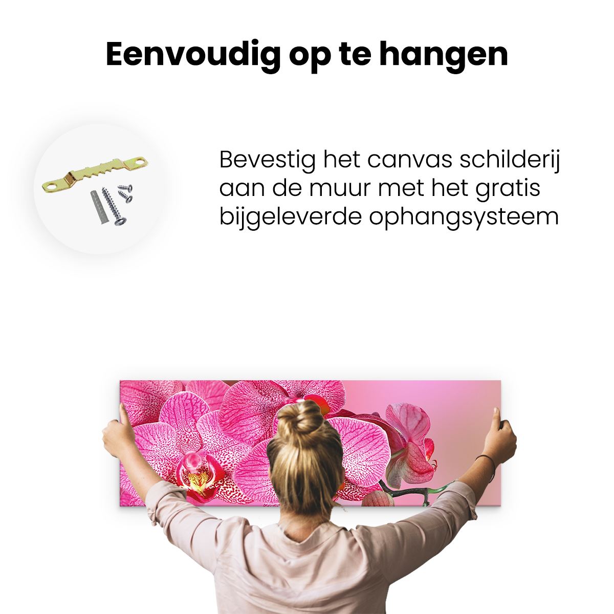 Bij aankoop ontvang je een meegeleverd ophangsysteem, zodat je op een simpele en snelle wijze het schilderij boven de bank of bed kan monteren.