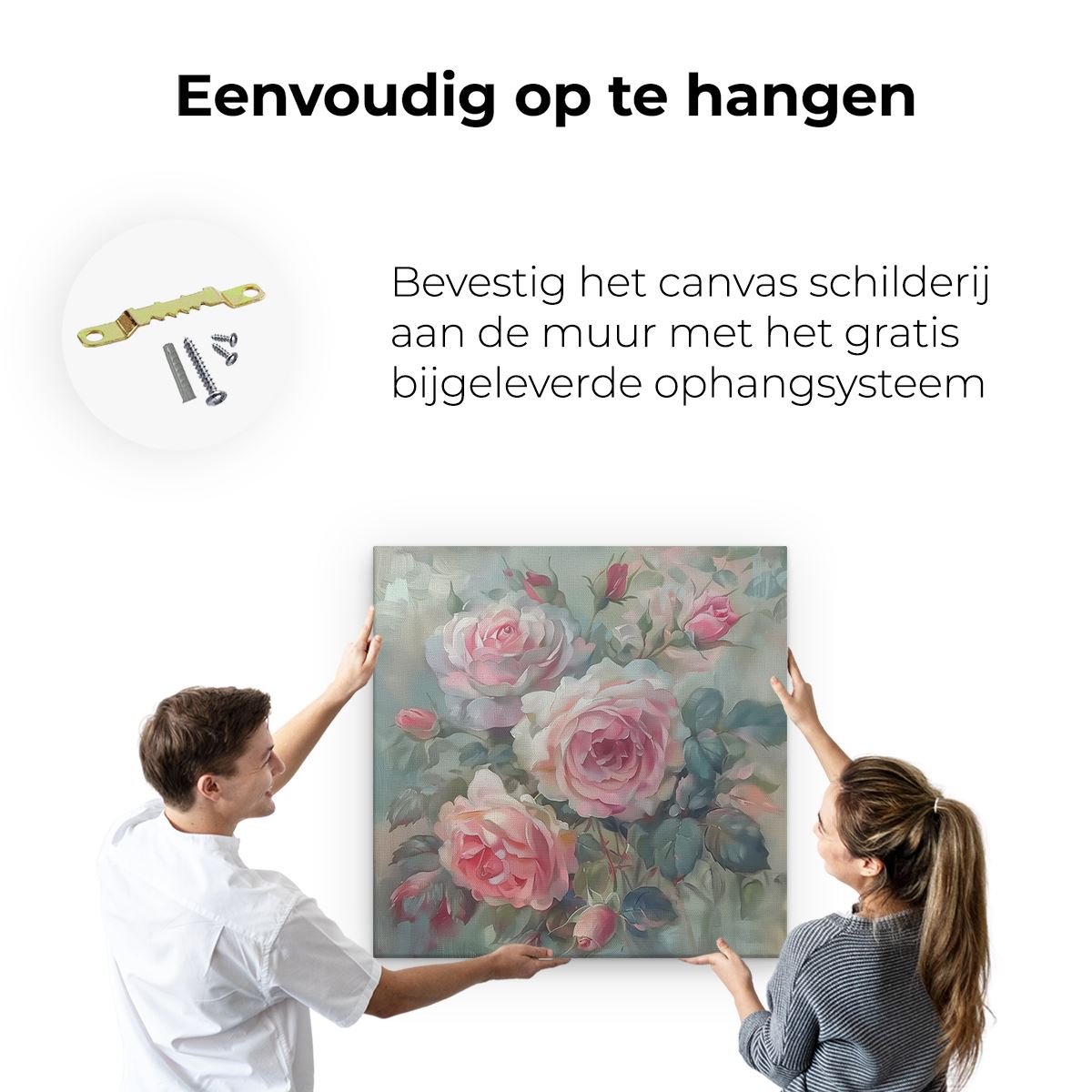 Bij aankoop ontvang je een meegeleverd ophangsysteem, zodat je op een simpele en snelle wijze het schilderij boven de bank of bed kan monteren.