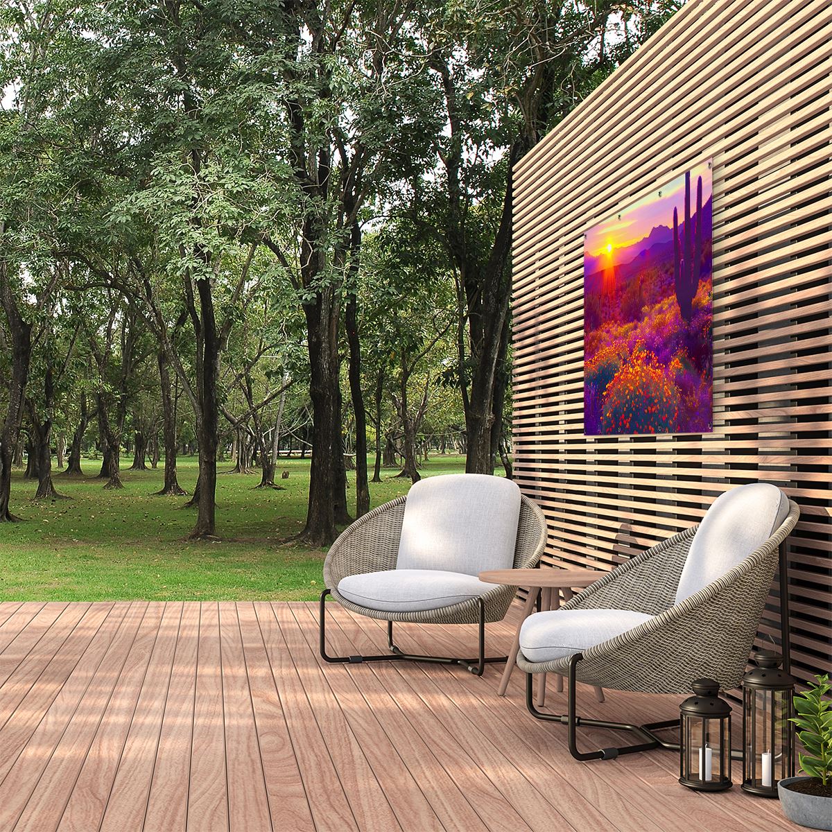 Bij aankoop ontvang je een meegeleverd ophangsysteem, zodat je op een simpele en snelle wijze de tuinposter kan ophangen.