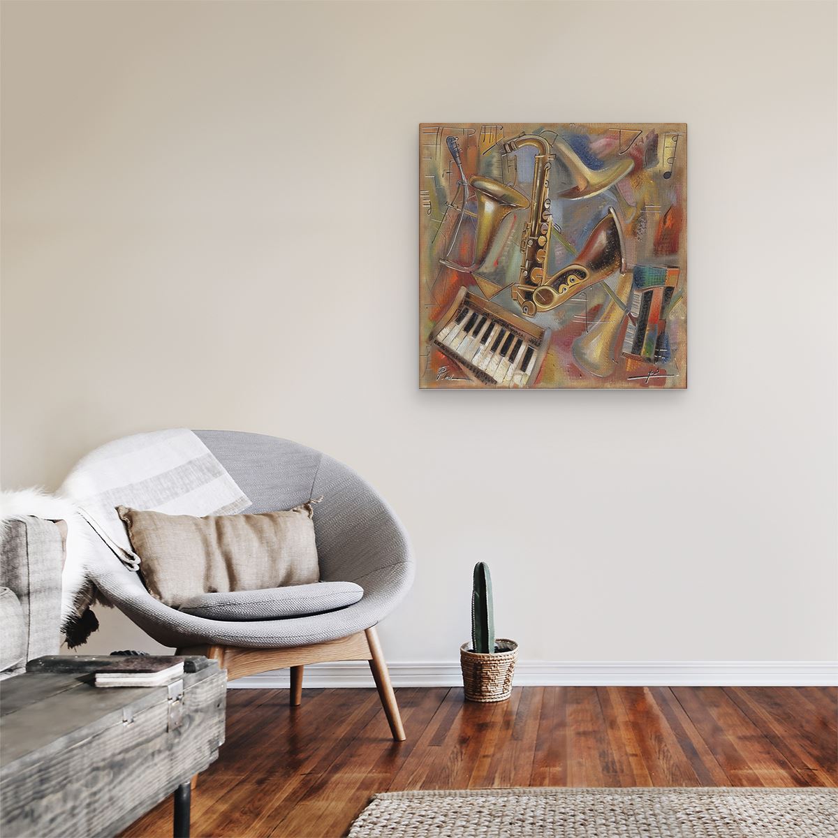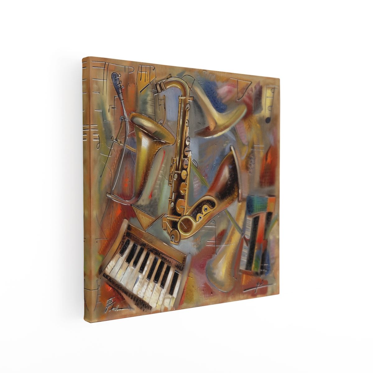 Schilderij Saxofoons, Keyboards en andere Muziekinstrumenten