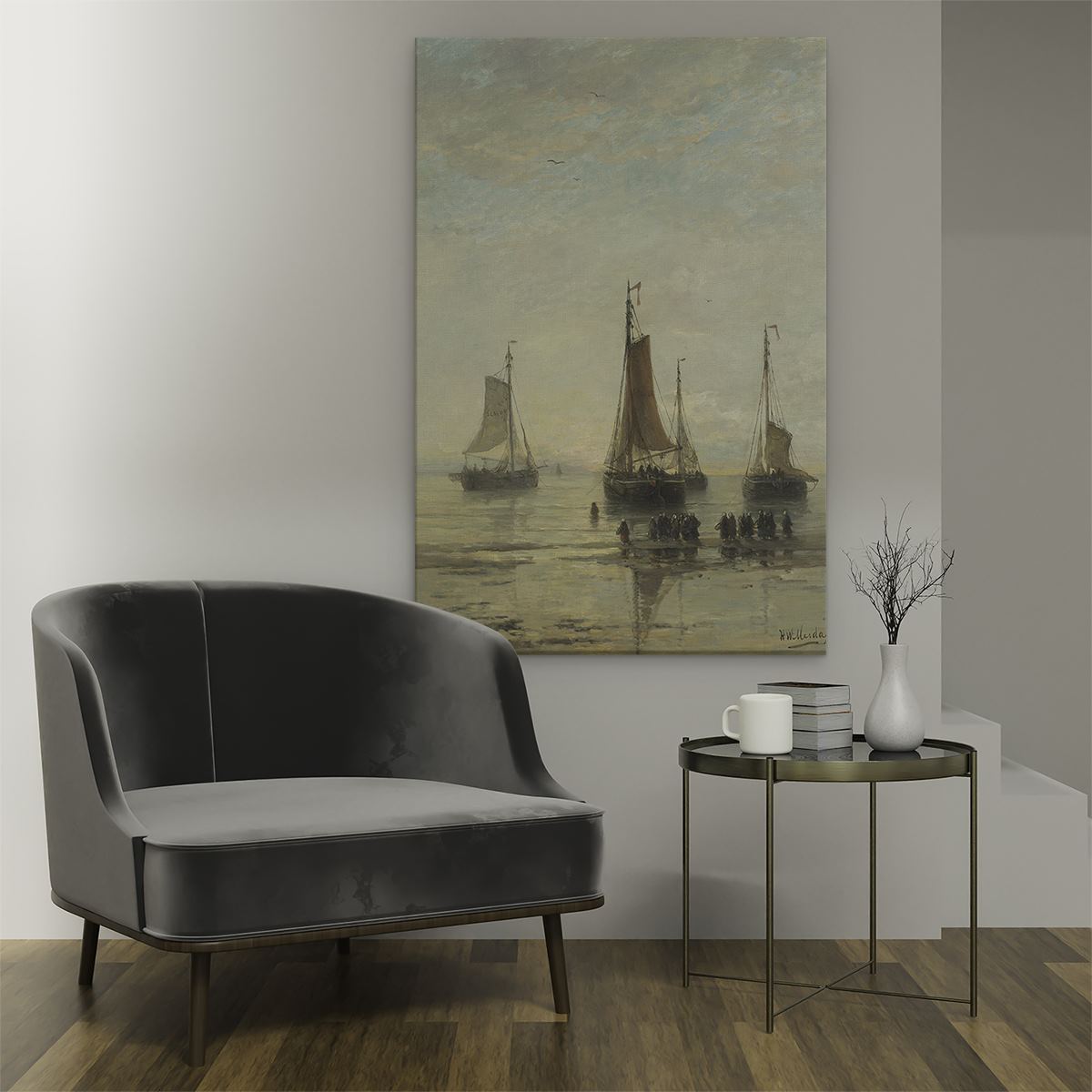 Schilderij Scheveningse Bommen voor Anker - Hendrik Willem Mesdag