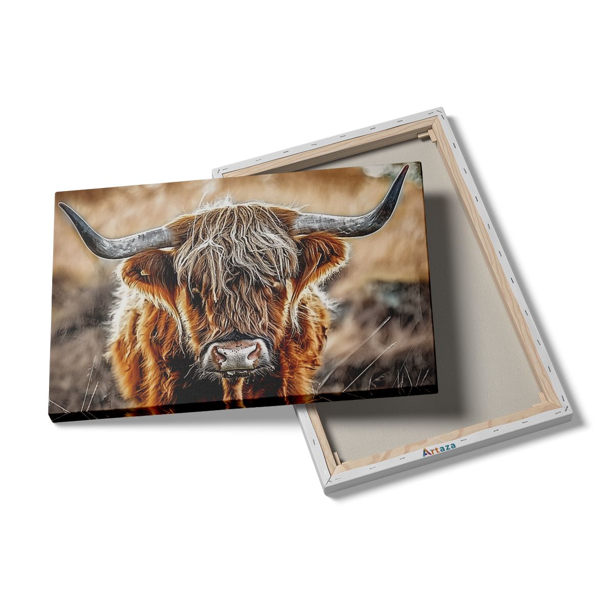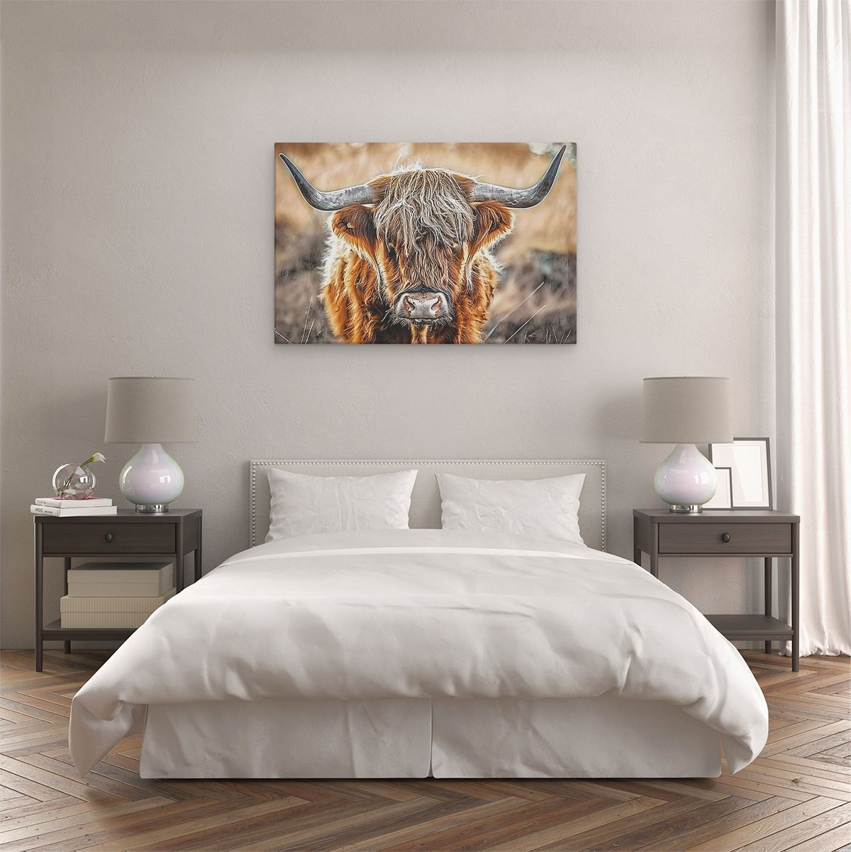 Schilderij Schotse Hooglandkoe met Lange Hoorns