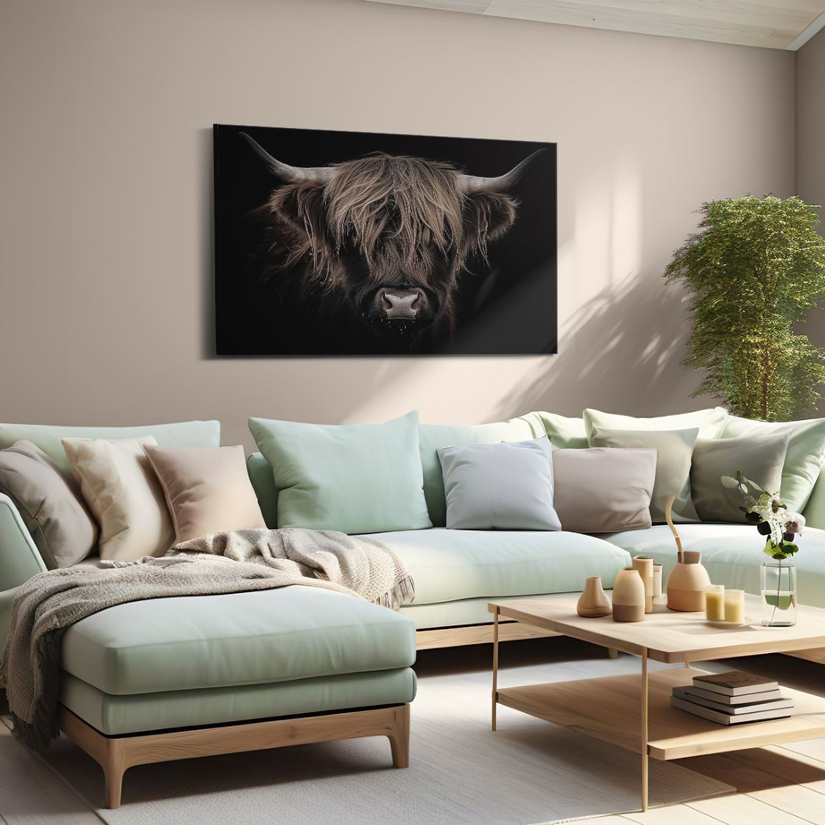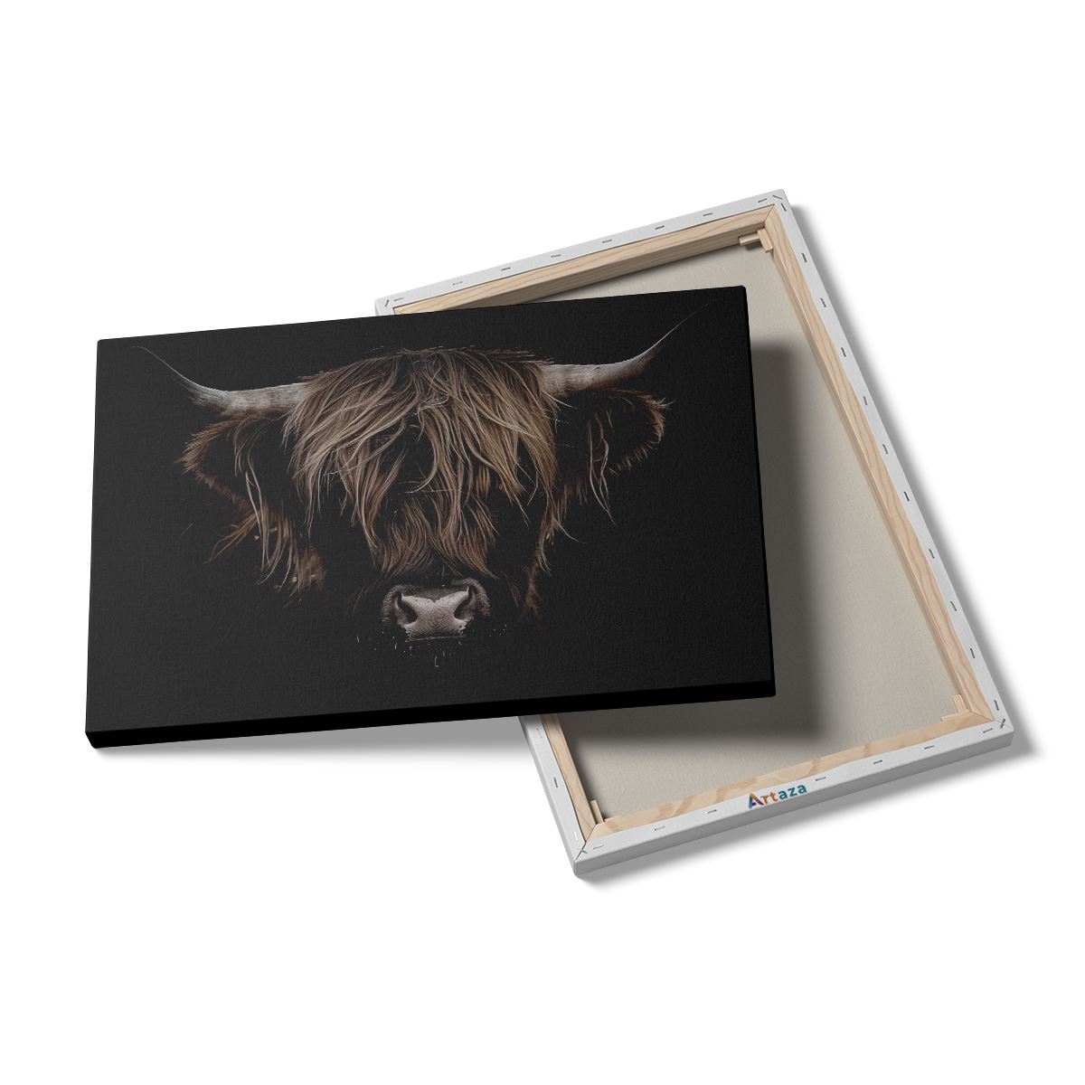 Schilderij Schotse Hooglandkoe op een Zwarte Achtergrond
