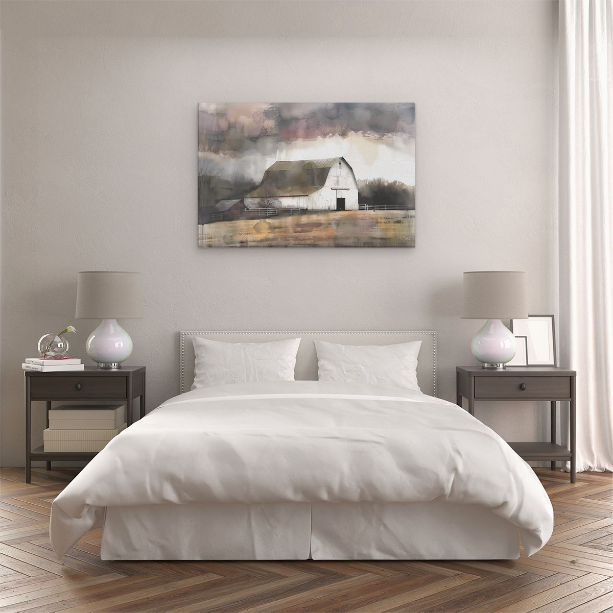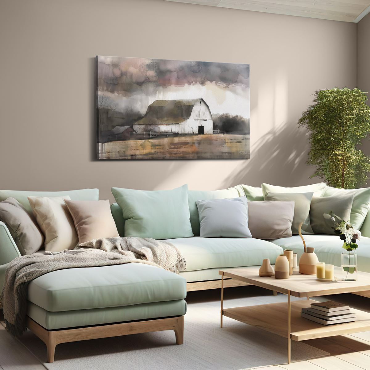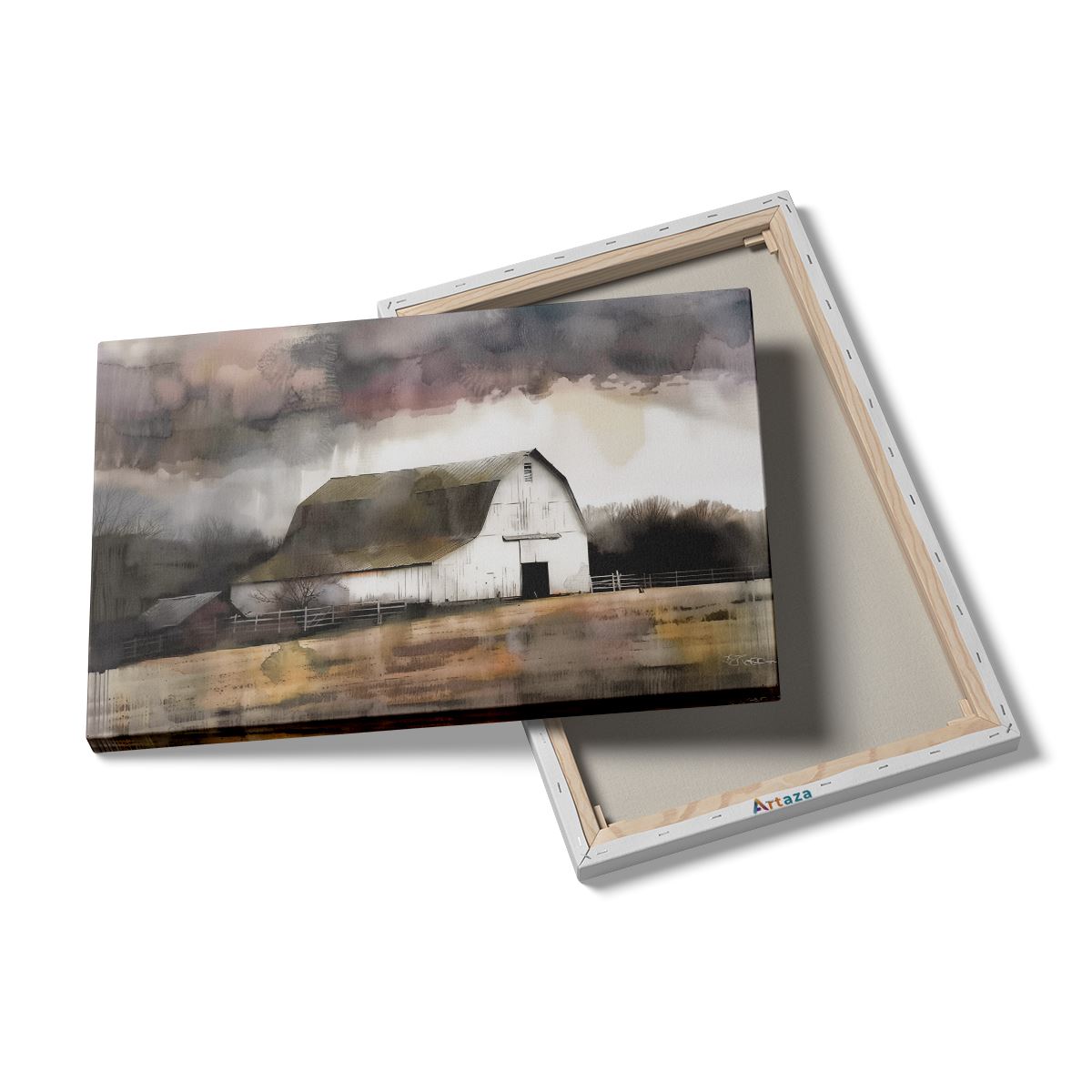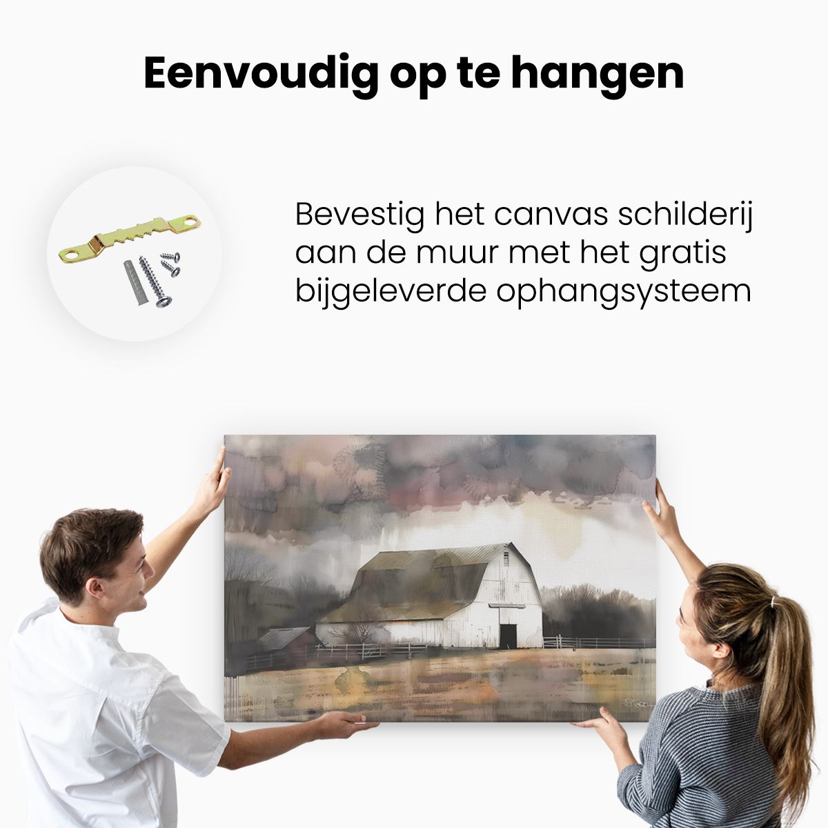 Schilderij Schuur in een Veld met een Stormachtige Lucht