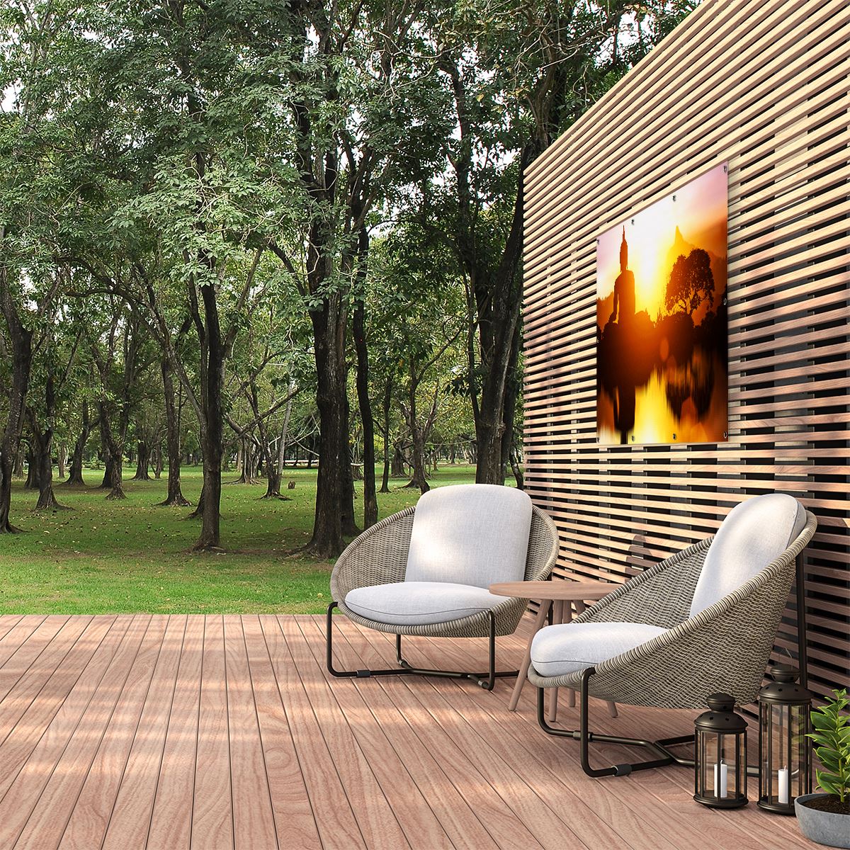 Tuinposter Silhouet Van Boeddha Beeld Met Zonsondergang