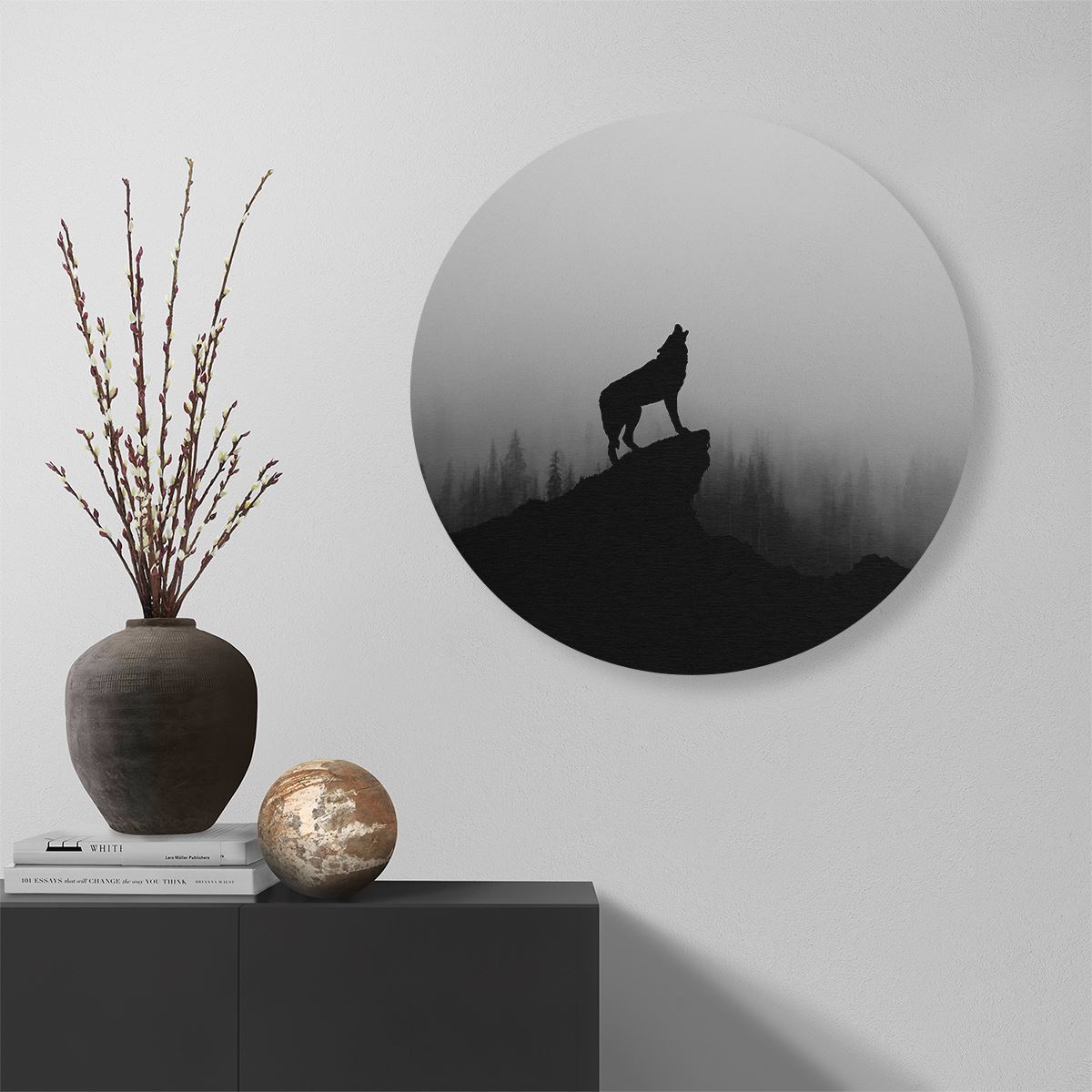 Wandcirkel Silhouet Van Een Huilende Wolf - Abstract