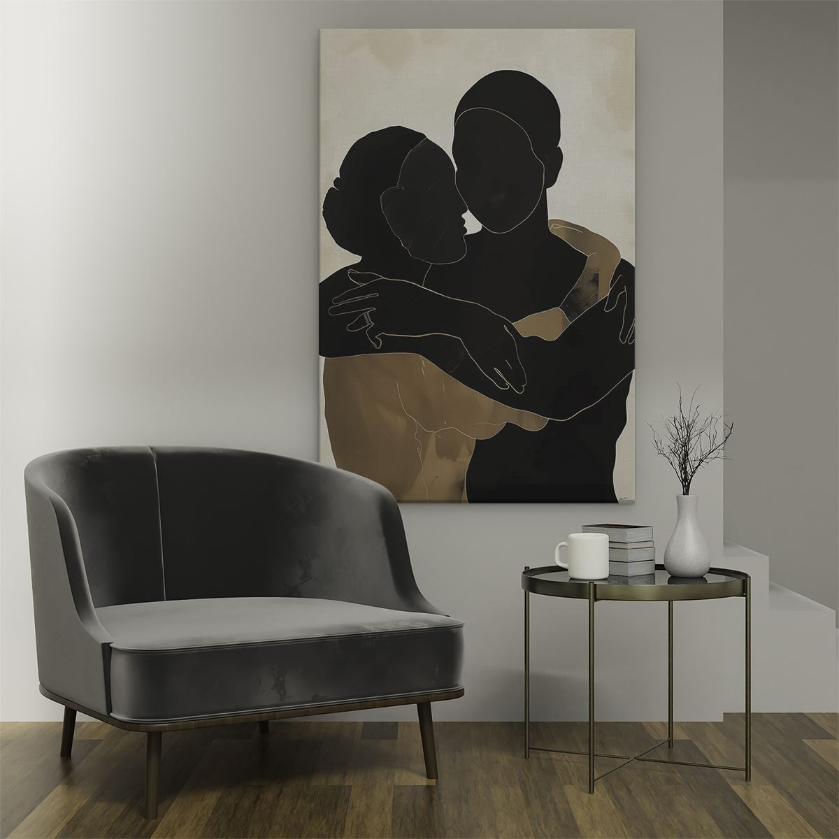 Schilderij Silhouet van een Knuffelend Stel