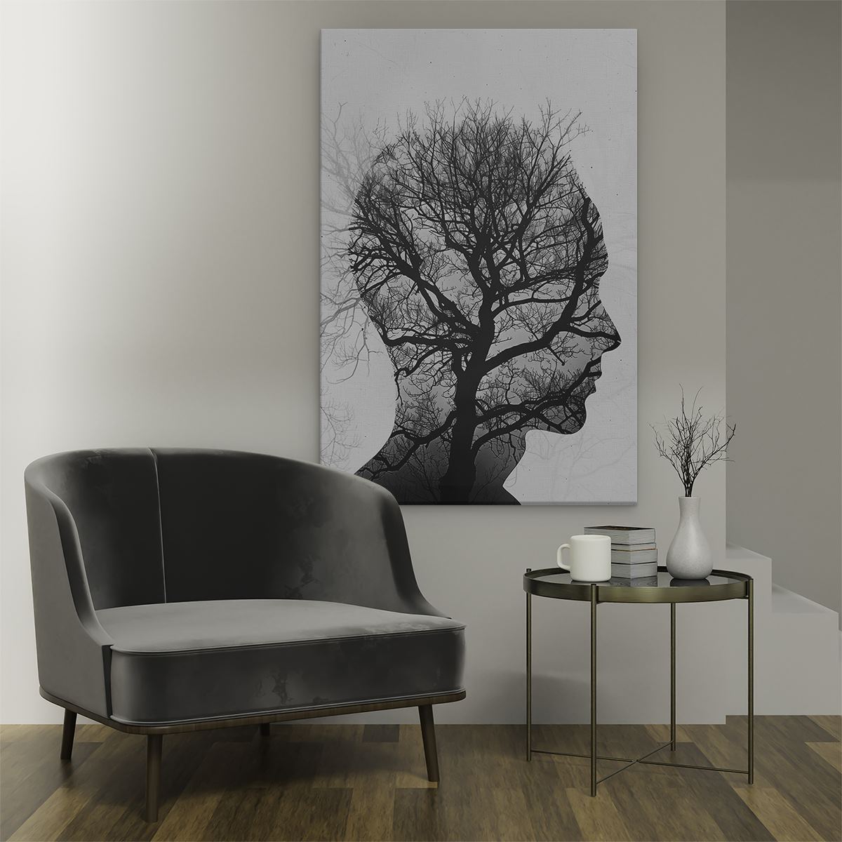 Schilderij Silhouet van een Man met een Boom in zijn Hoofd