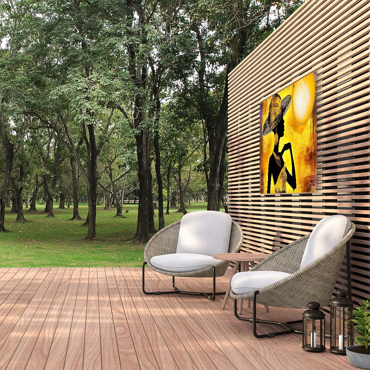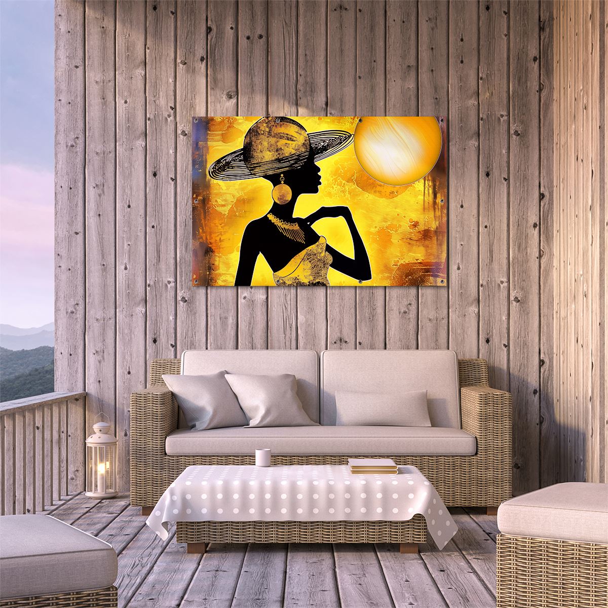 Tuinposter Silhouet van een Vrouw die een Hoed Draagt