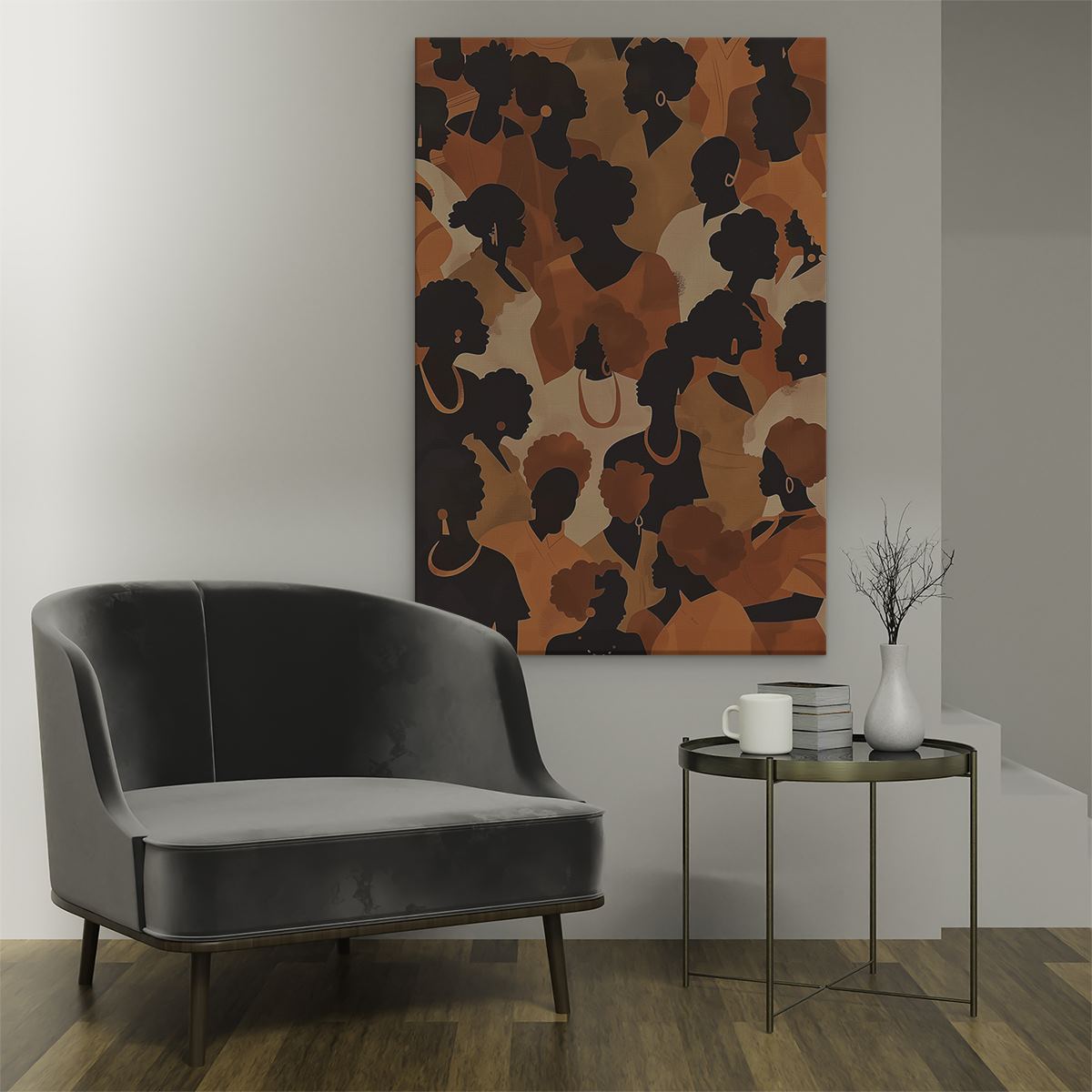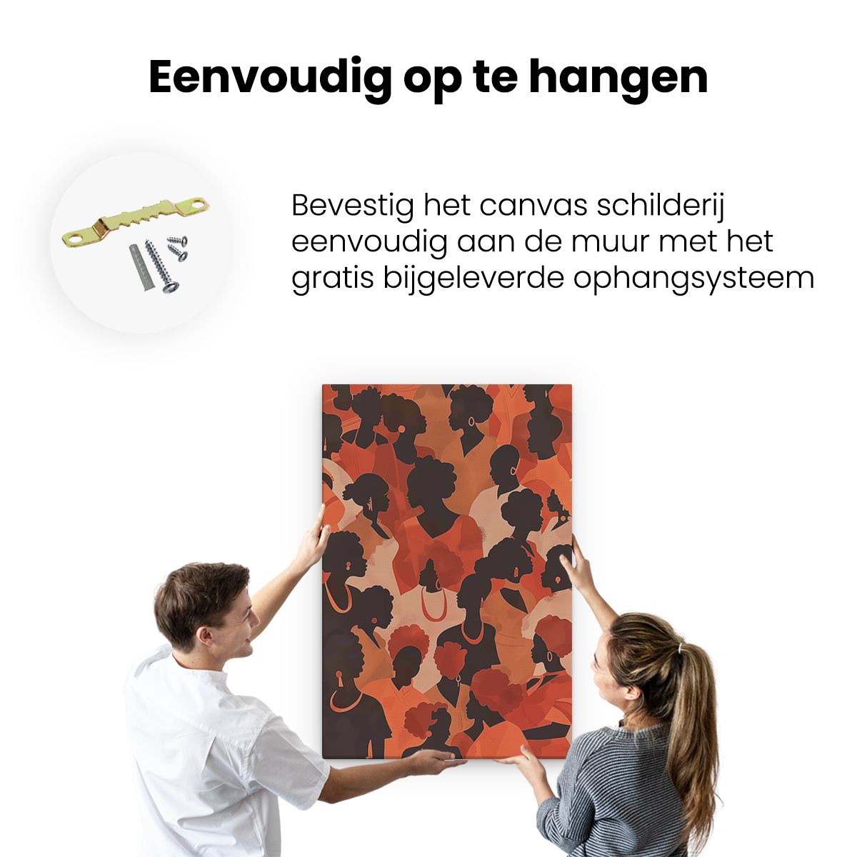 Schilderij Silhouetten van Vrouwen in Oranje en Zwart