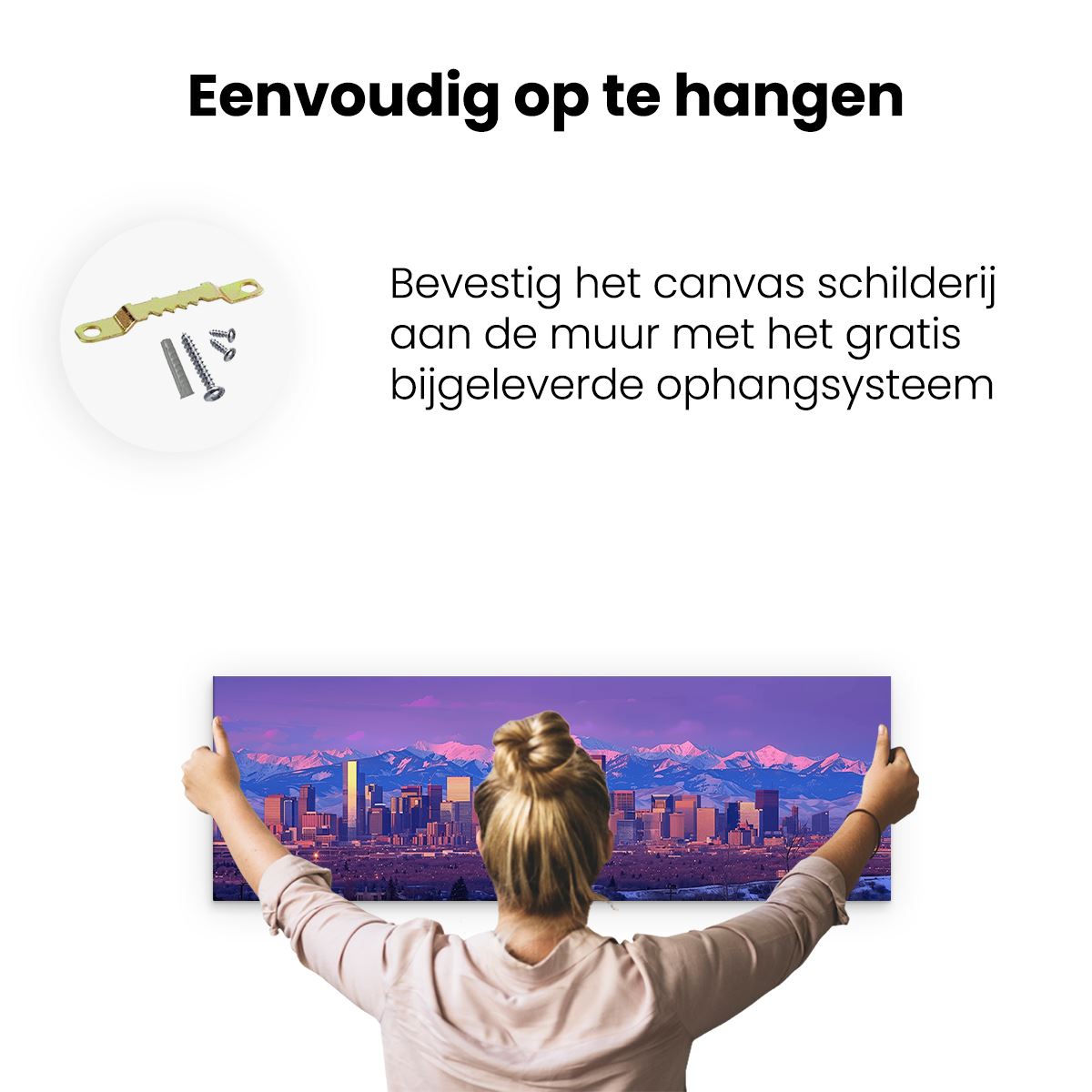 Bij aankoop ontvang je een meegeleverd ophangsysteem, zodat je op een simpele en snelle wijze het schilderij boven de bank of bed kan monteren.