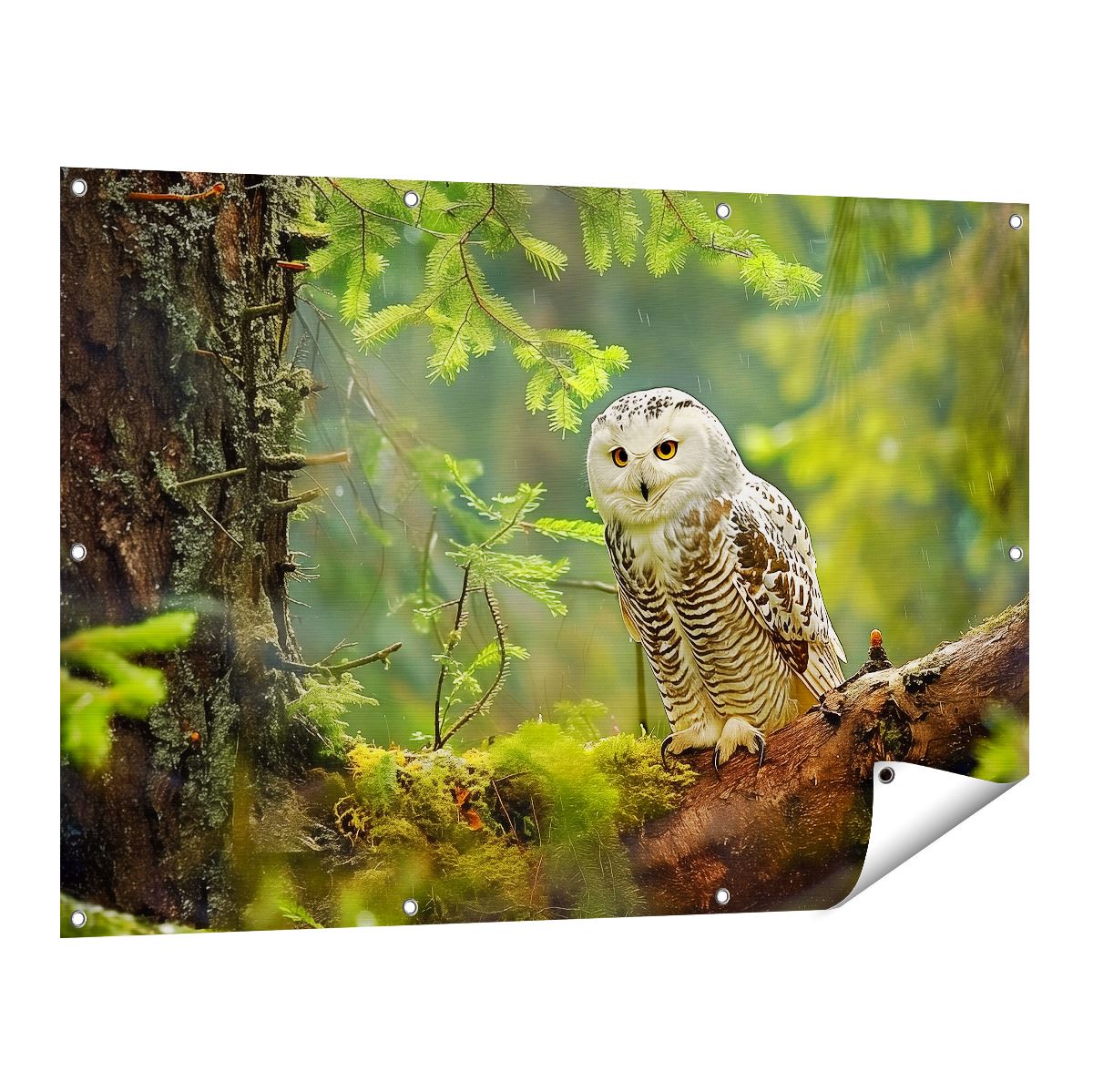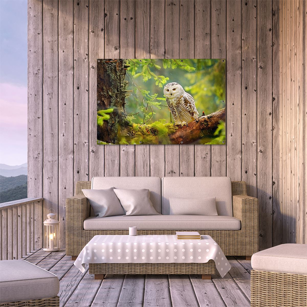 Tuinposter Sneeuwuil Zat op een Boomtak