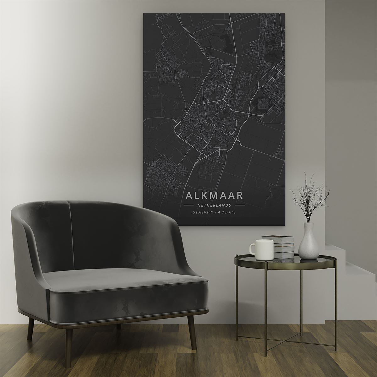 Schilderij Stadskaart Alkmaar in het Donker Grijs