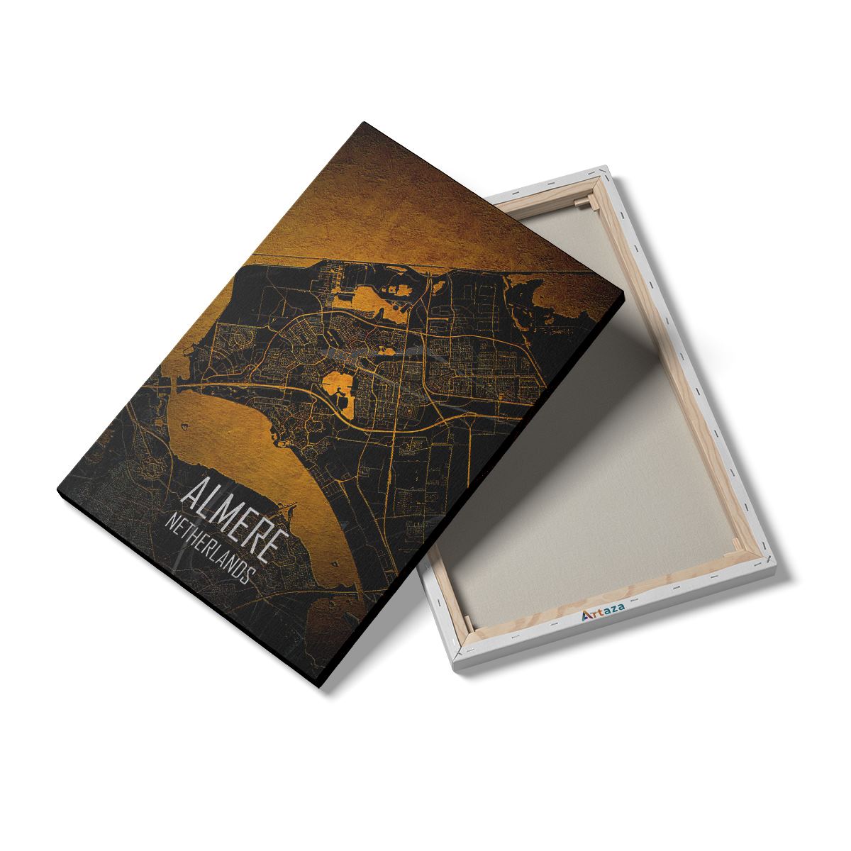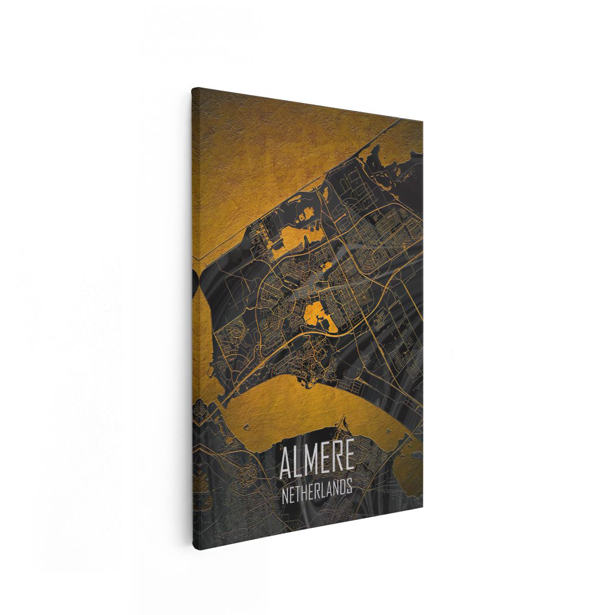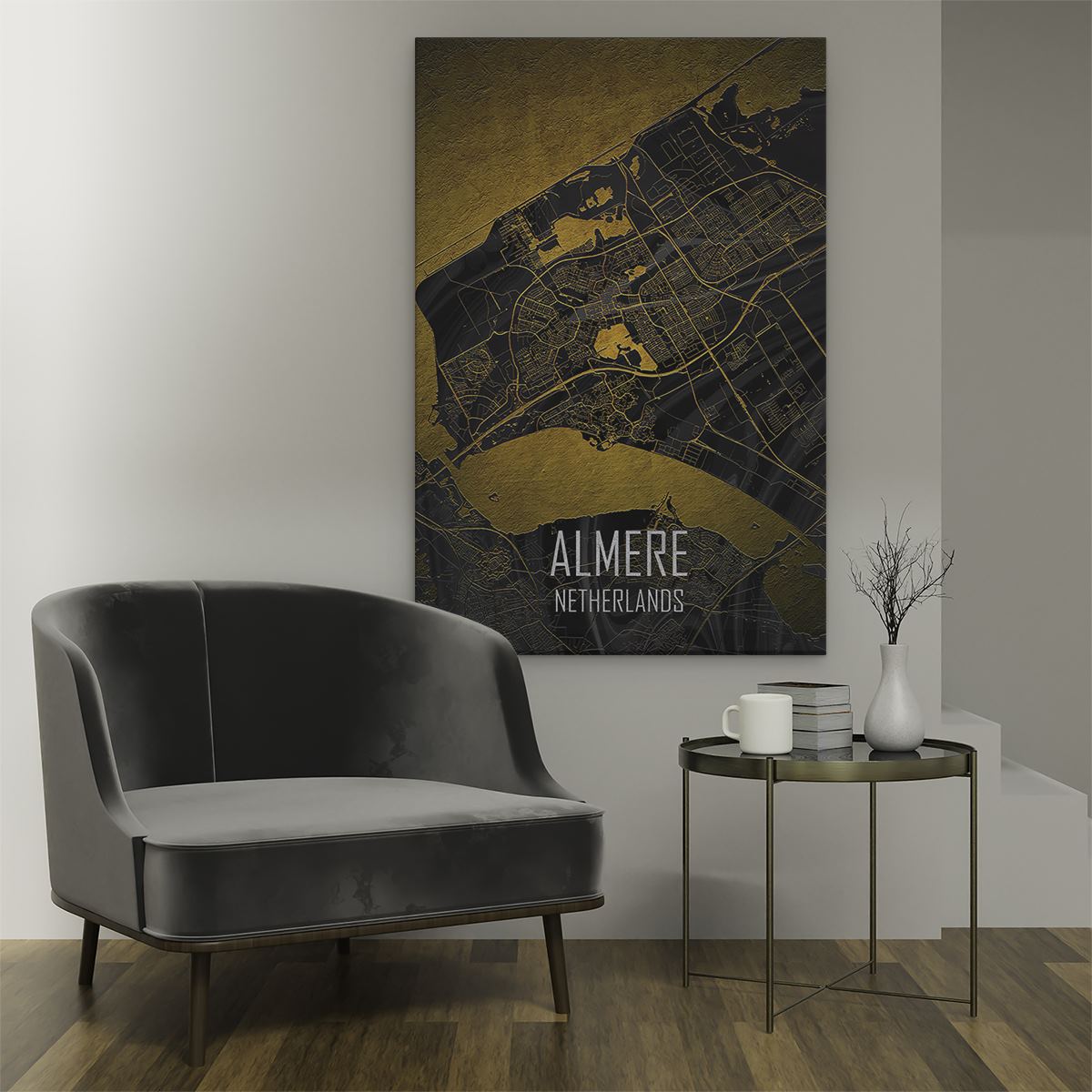 Schilderij Stadskaart Almere in het Goud en Zwart