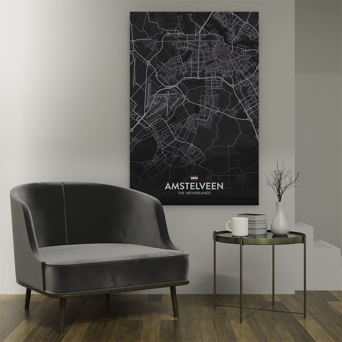 Schilderij Stadskaart Amstelveen in het Zwart