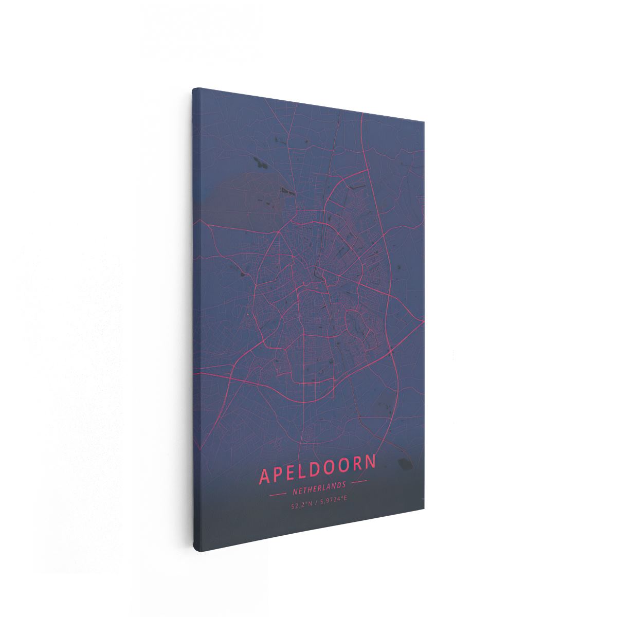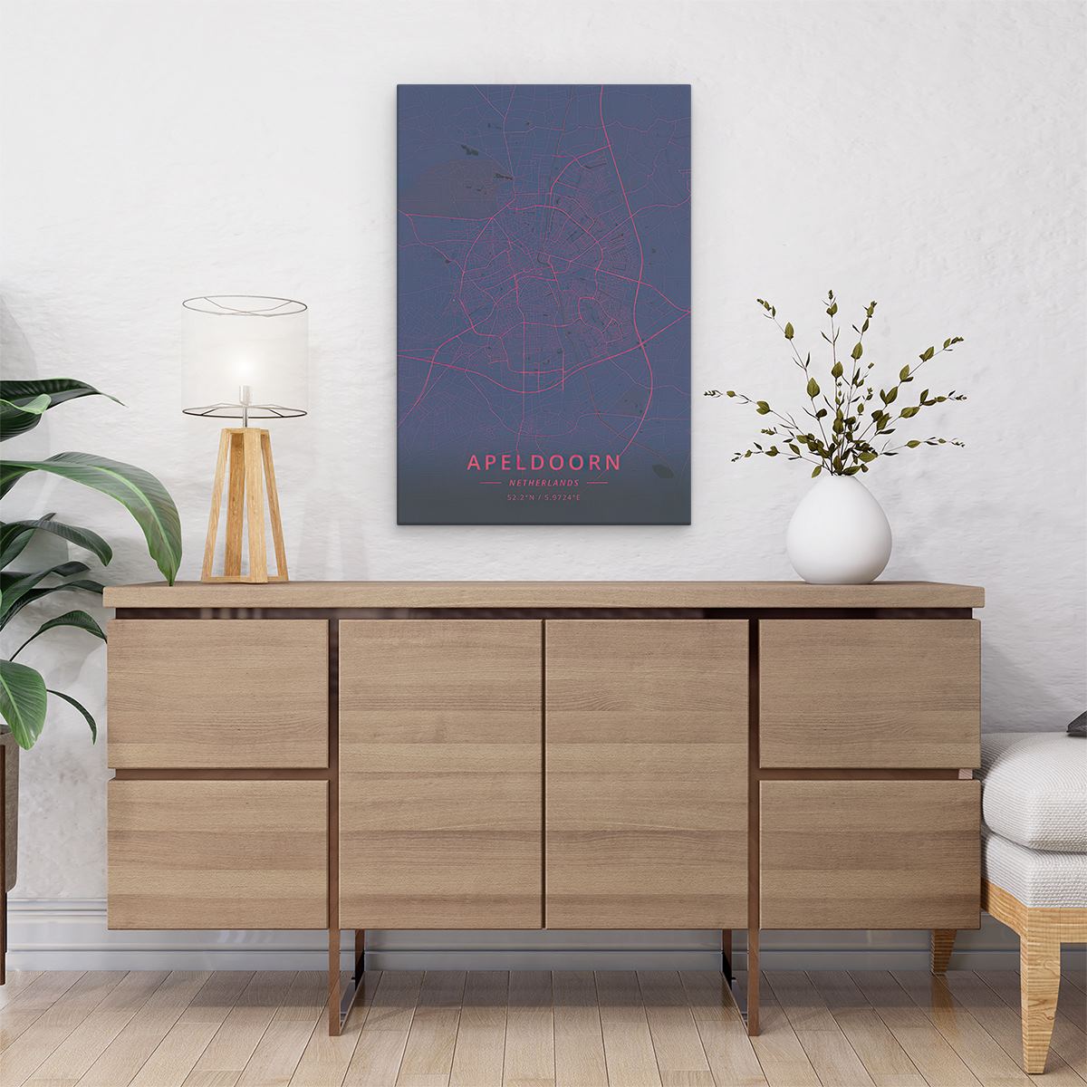 Schilderij Stadskaart Apeldoorn in het Blauw met Rood