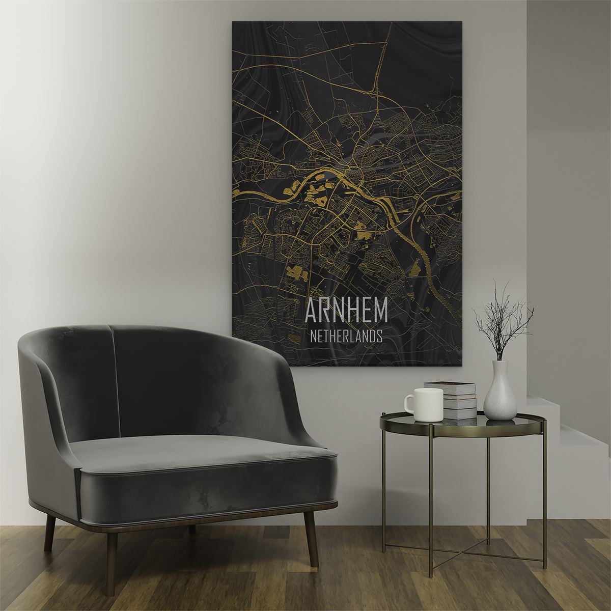 Schilderij Stadskaart Arnhem in het Goud en Zwart