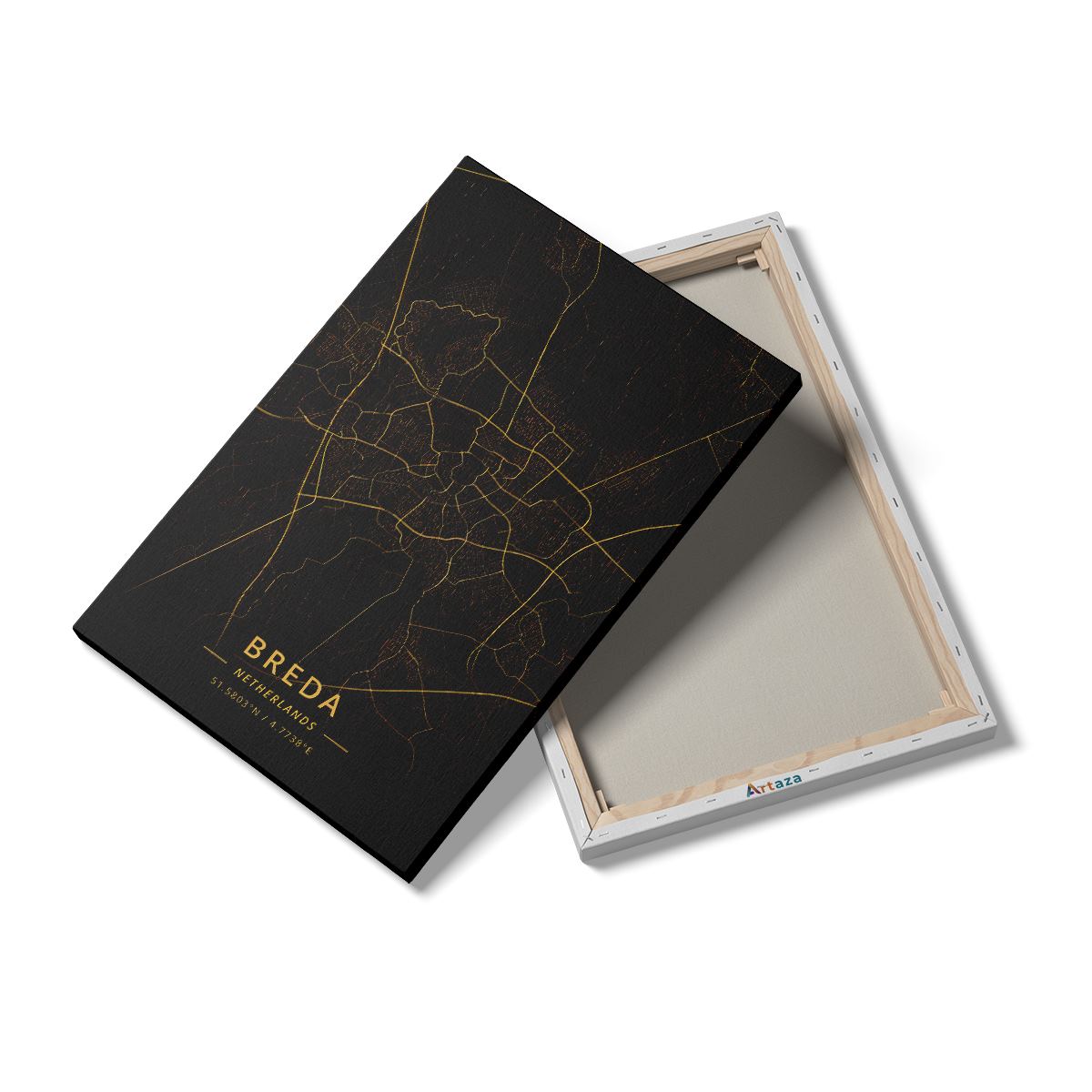 Schilderij Stadskaart Breda in het Goud en Zwart