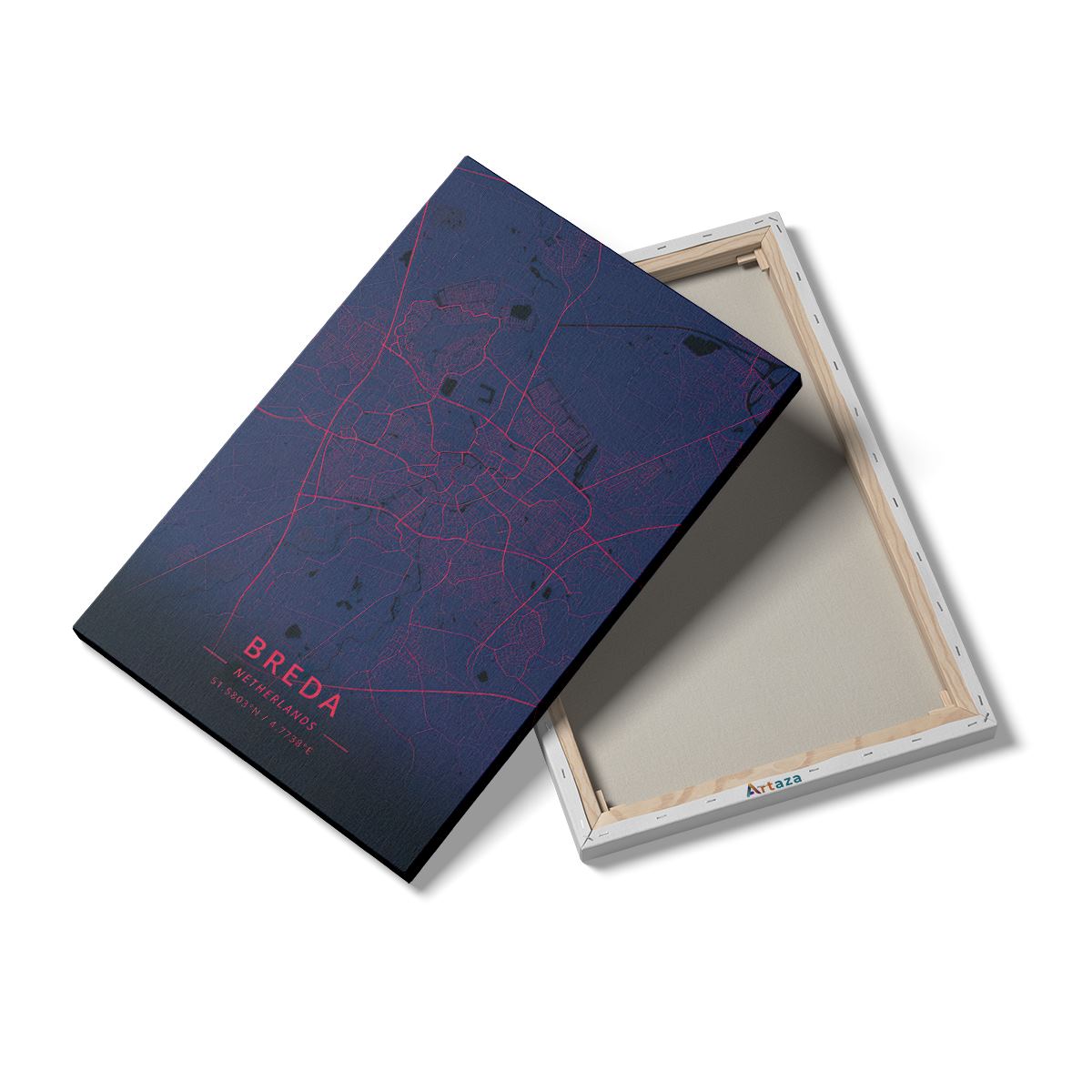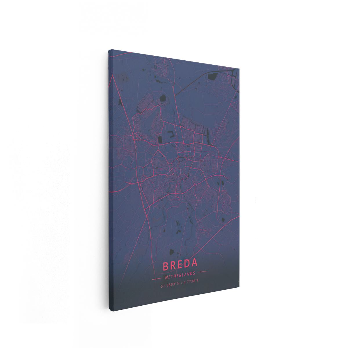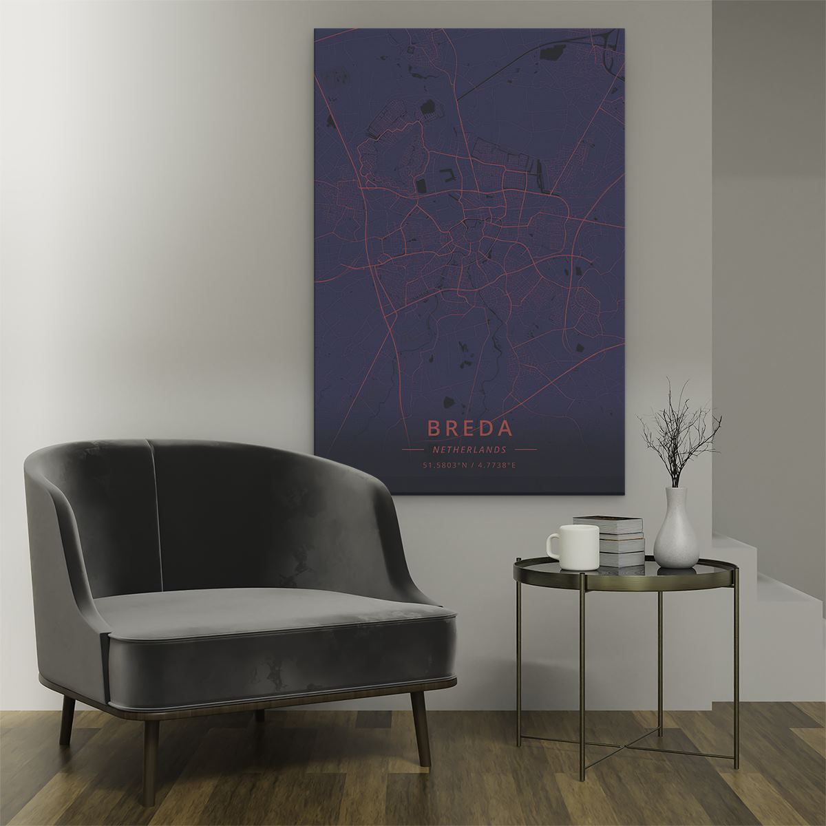 Schilderij Stadskaart Breda in het Rood en Zwart