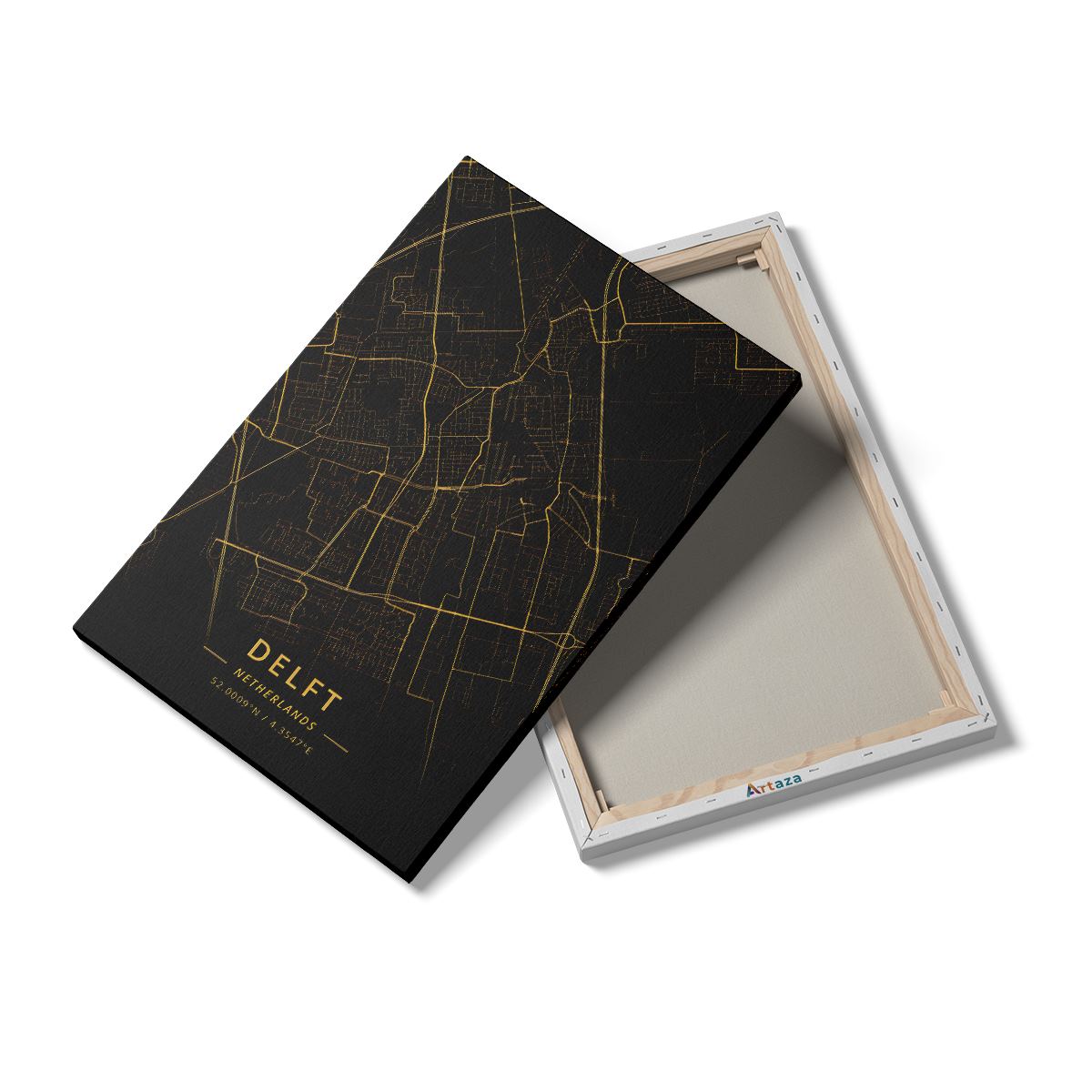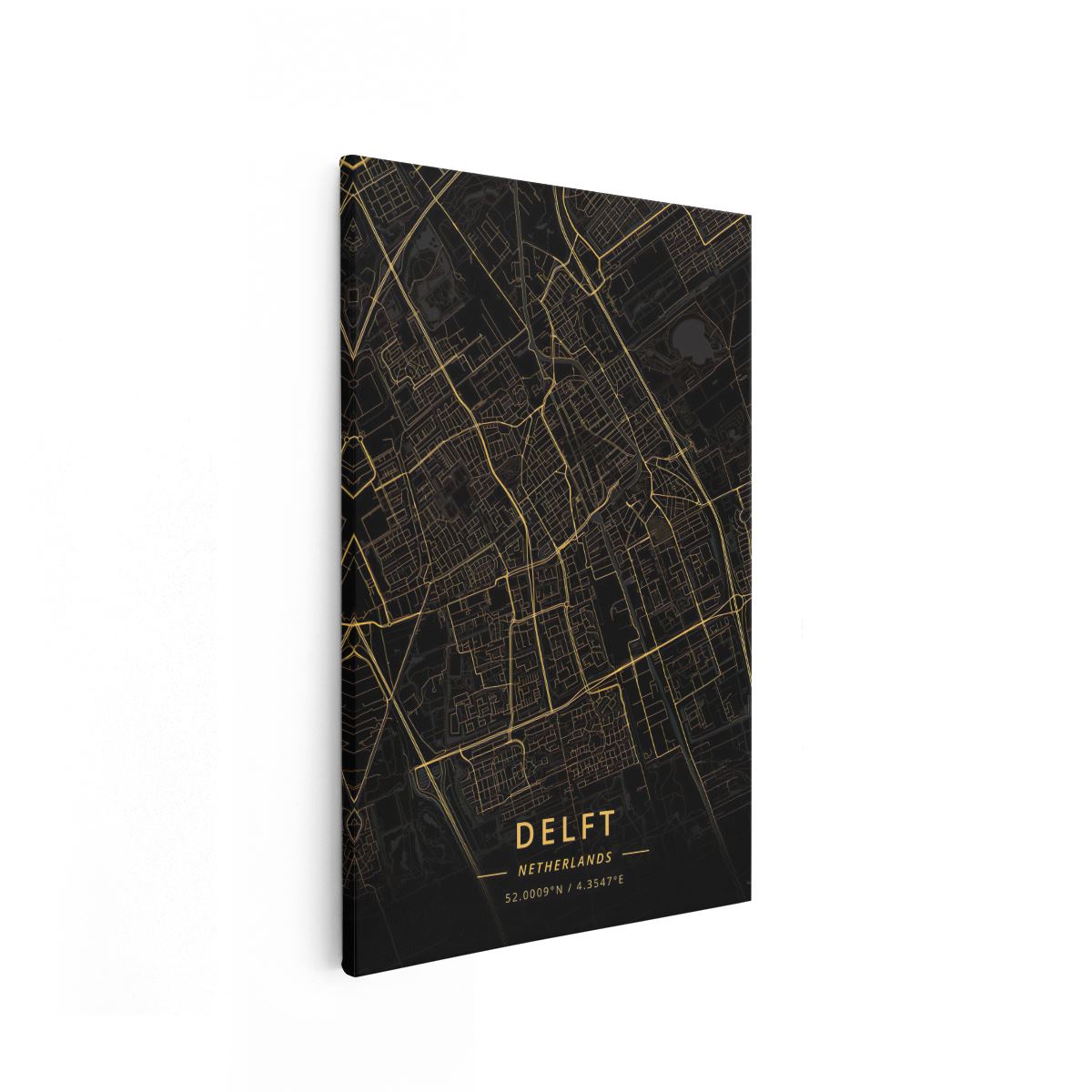 Schilderij Stadskaart Delft in het Goud en Zwart