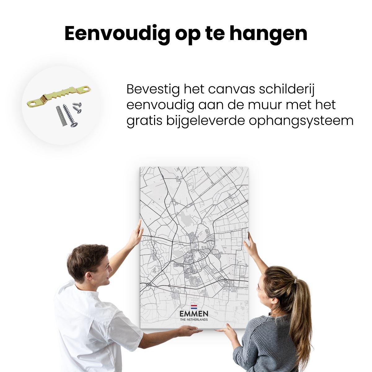 Bij aankoop ontvang je een meegeleverd ophangsysteem, zodat je op een simpele en snelle wijze het schilderij boven de bank of bed kan monteren.