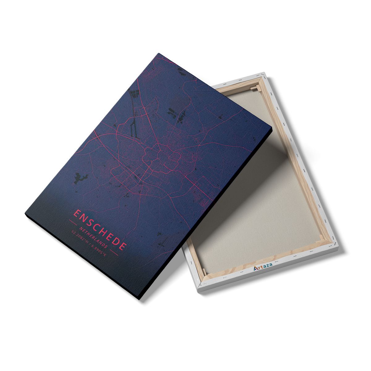 Schilderij Stadskaart Enschede in het Rood en Zwart