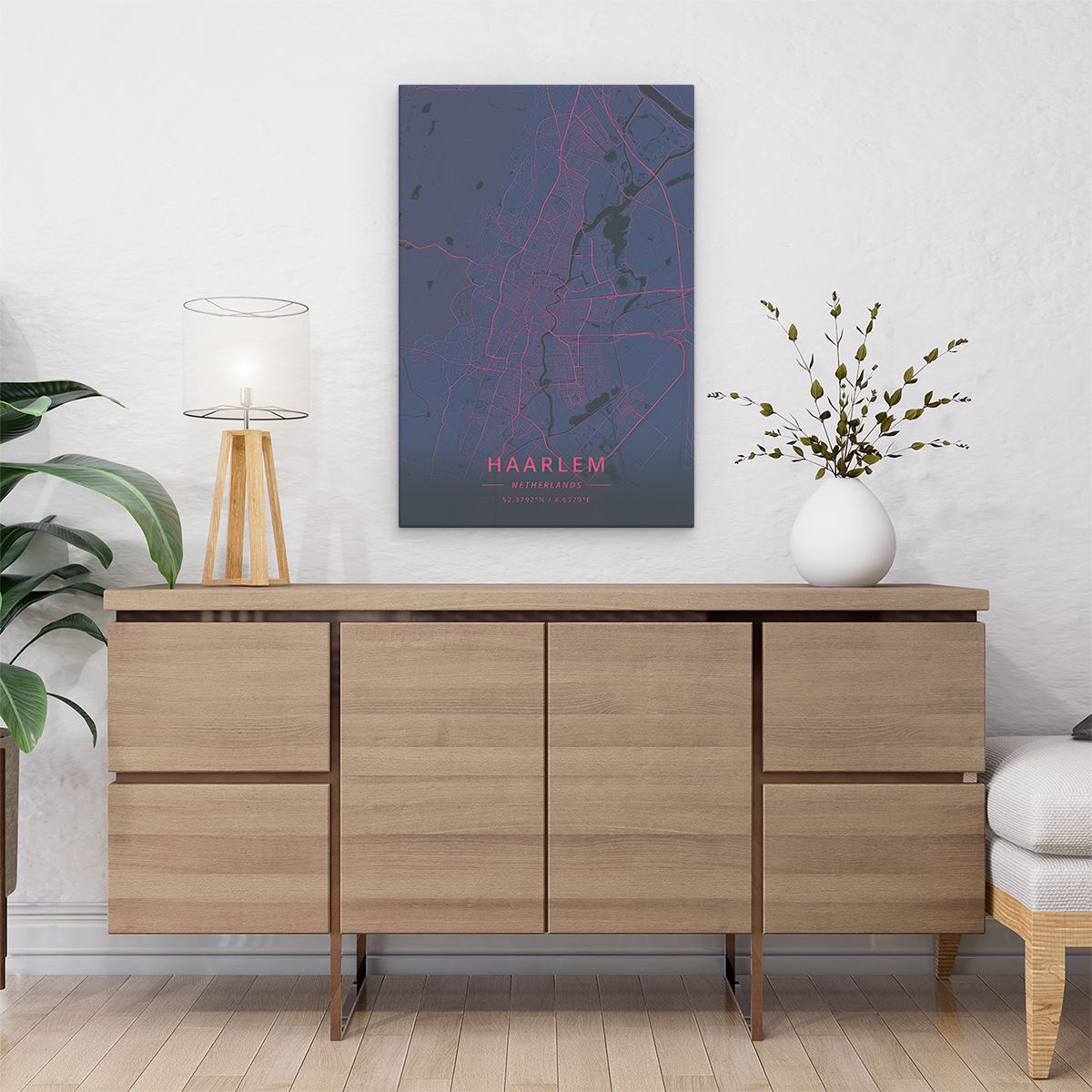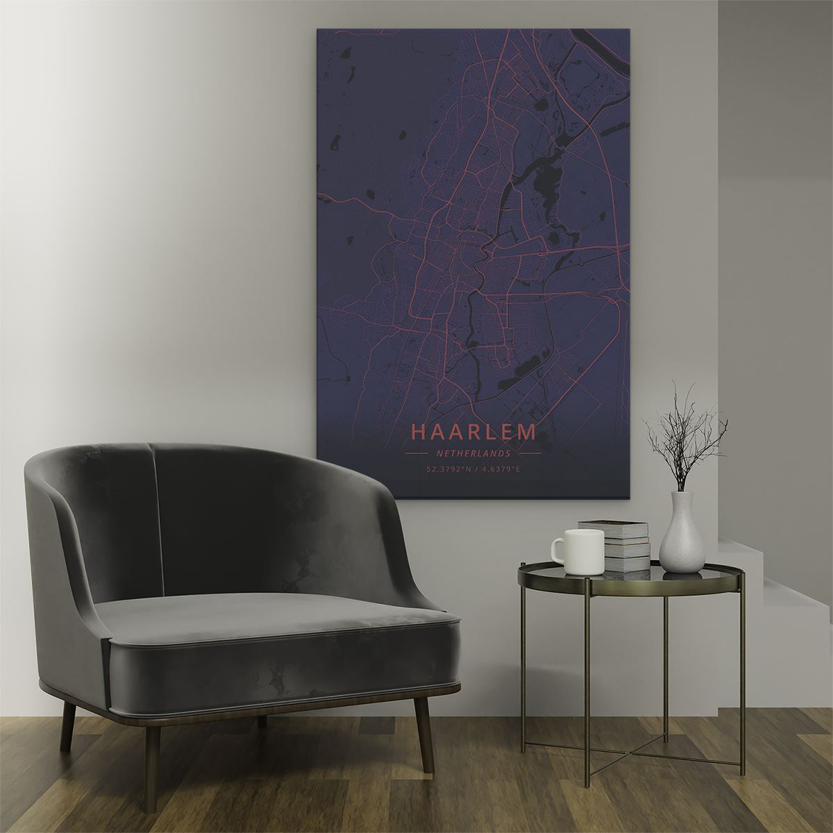 Schilderij Stadskaart Haarlem in het Rood en Zwart