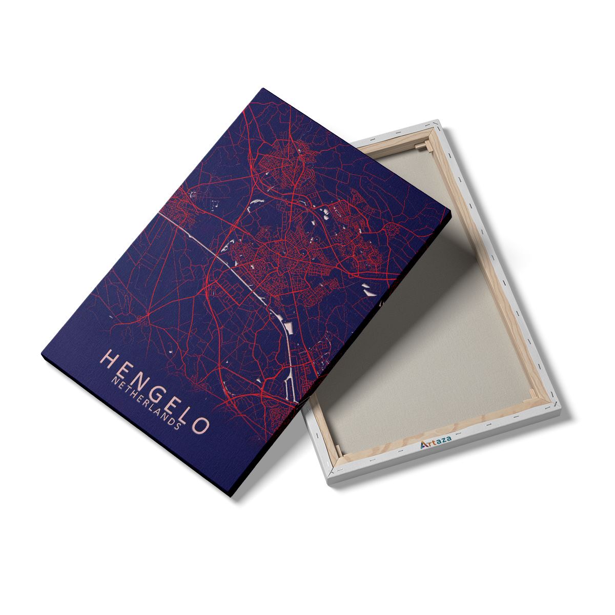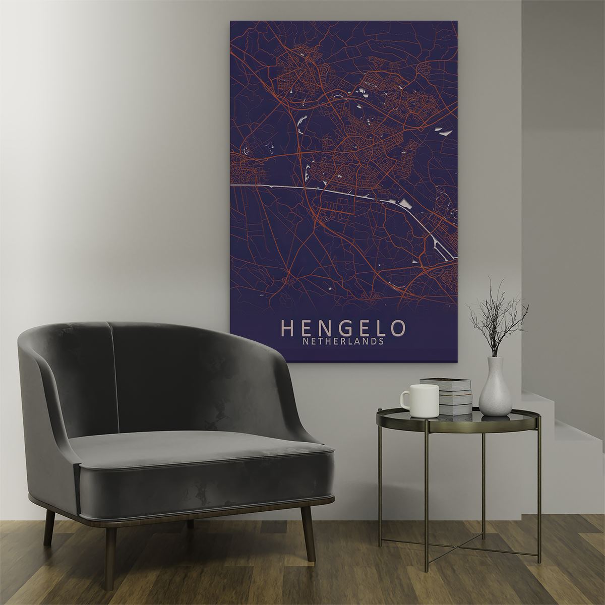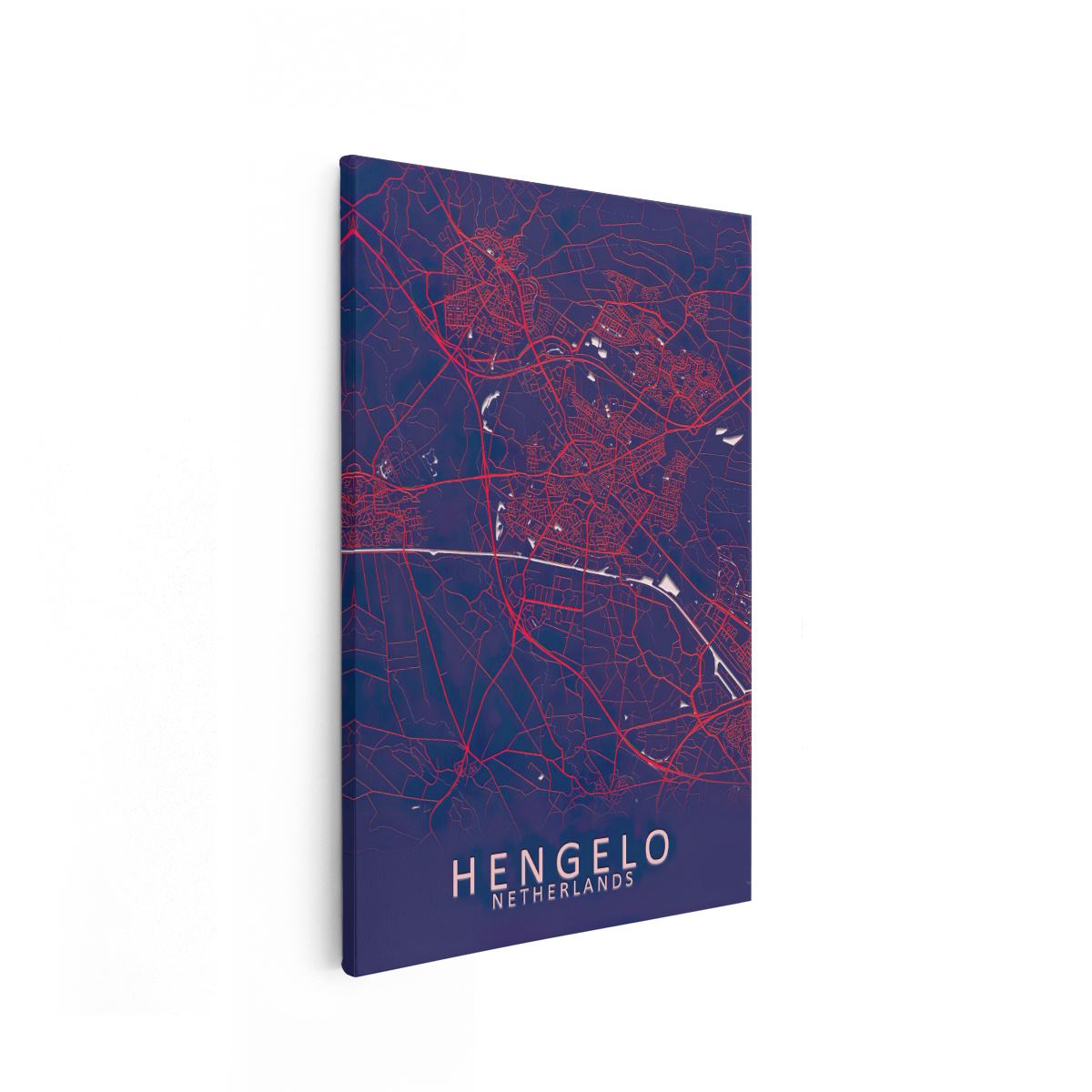 Schilderij Stadskaart Hengelo in het Paars Rood