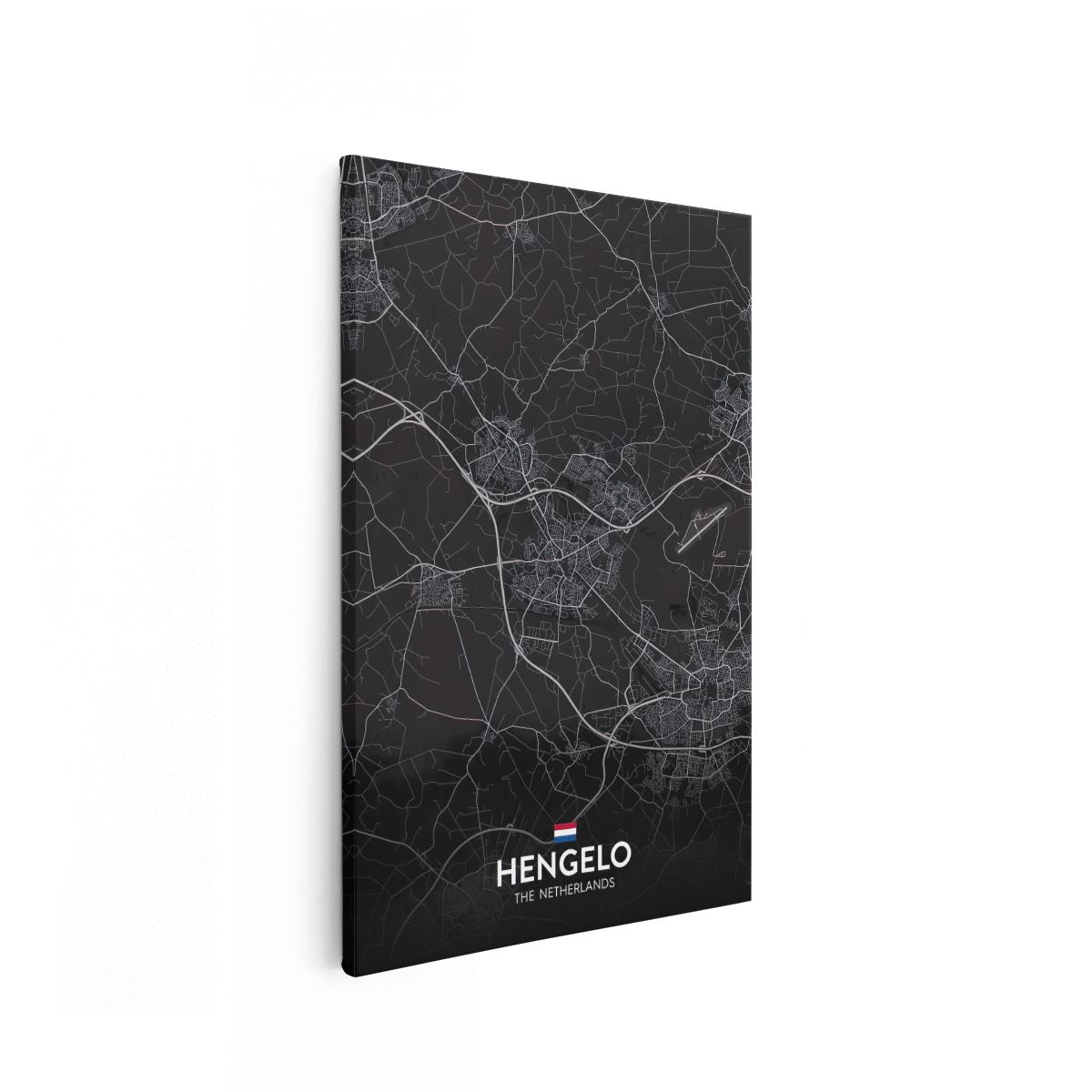 Schilderij Stadskaart Hengelo in het Zwart