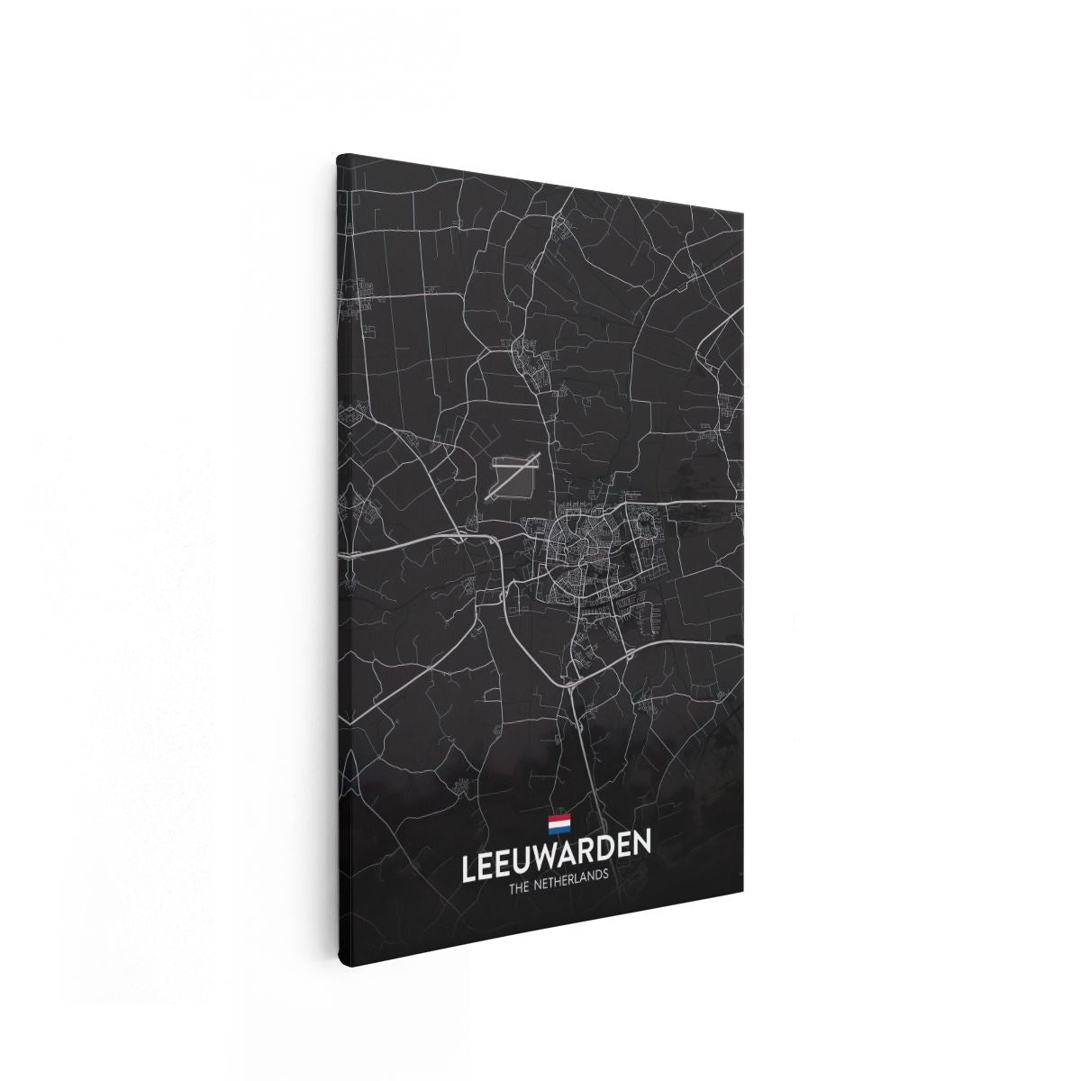 Schilderij Stadskaart Leeuwarden in het Zwart