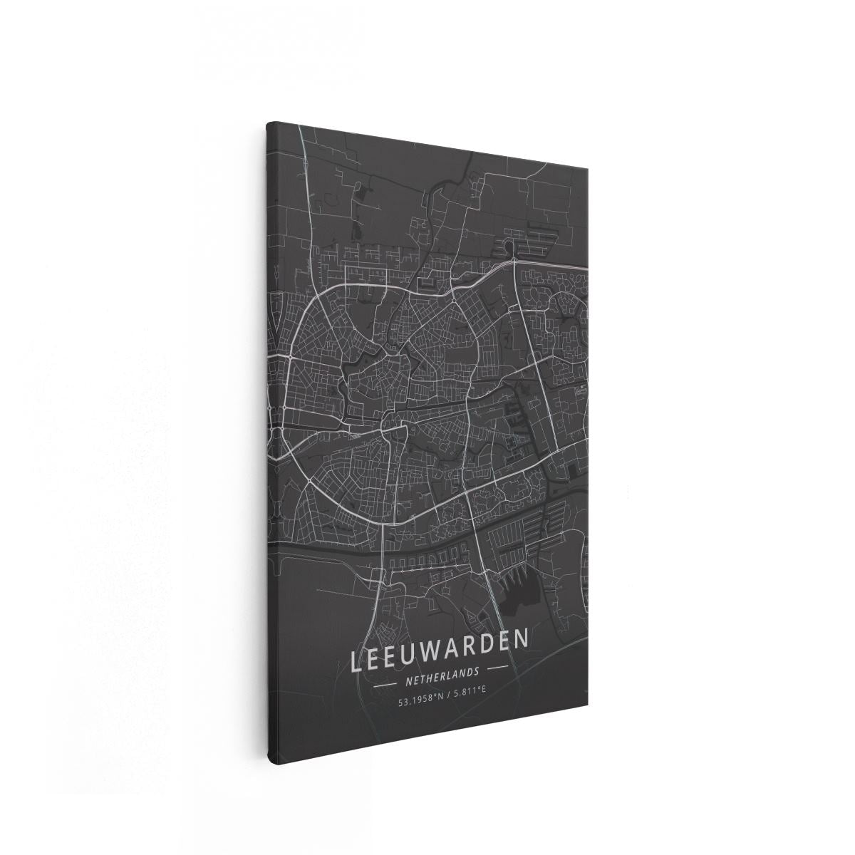Schilderij Stadskaart Leeuwarden in het Zwart