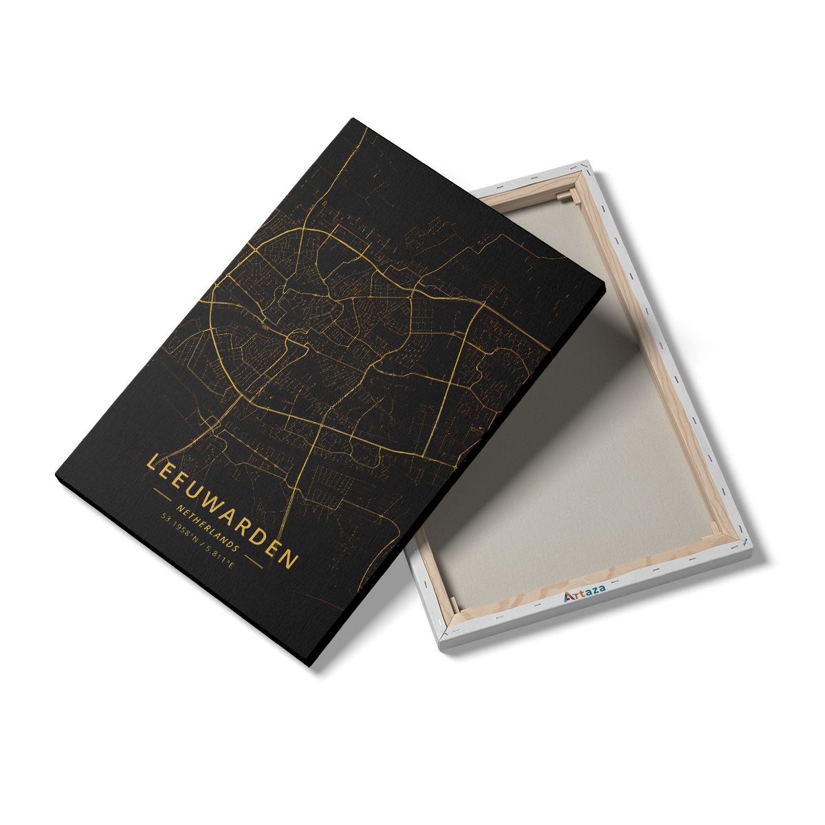 Schilderij Stadskaart Leeuwarden in het Zwart en Goud