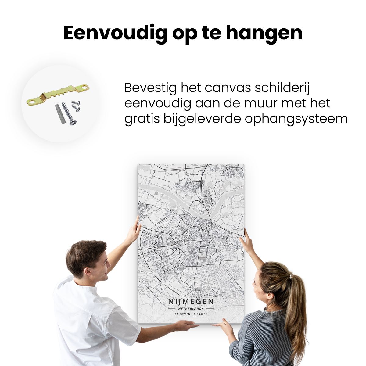 Bij aankoop ontvang je een meegeleverd ophangsysteem, zodat je op een simpele en snelle wijze het schilderij boven de bank of bed kan monteren.